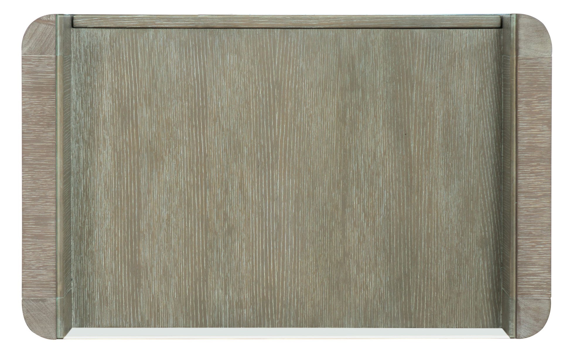 Organic and understated with a casual modern appeal, the Affinity Three-Drawer Nightstand contrasts a greige sand-blasted finish on Quartered Oak Veneers with a glass top shelf, accented by cream and pewter bar pulls. There’s a touch dimmer switch for your lamp.