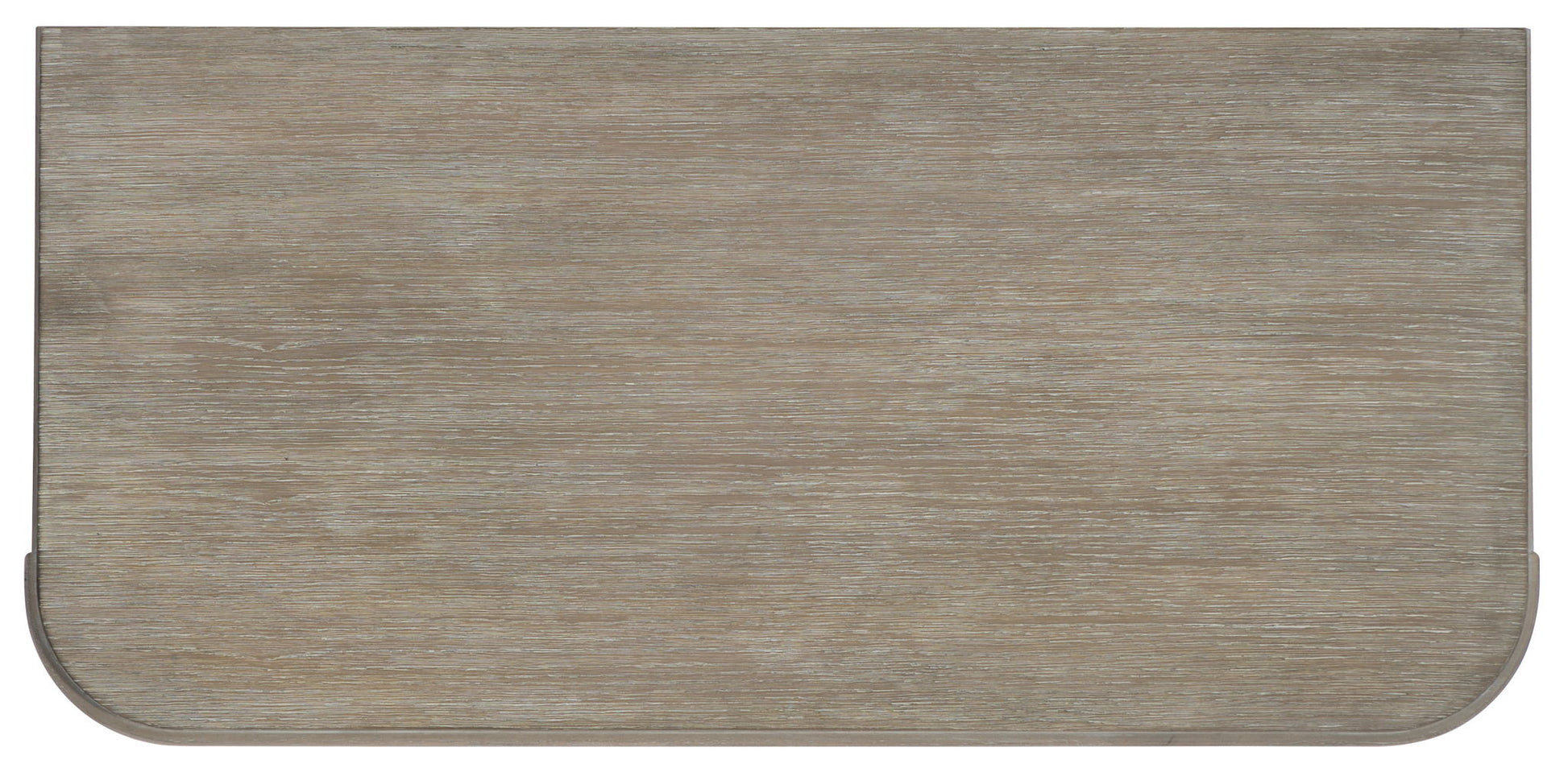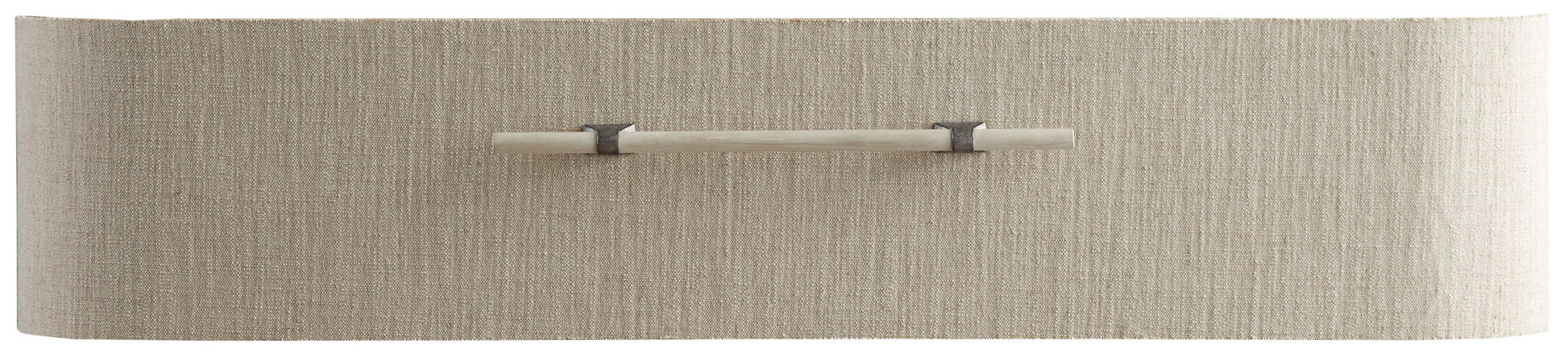 In a softly rounded form, the Affinity Bachelor’s Chest combines a greige sand-blasted finish on Quartered Oak veneers with fabric-wrapped drawer fronts and cream and pewter bar pulls for a serene appeal. With three drawers, the top drawer has a drop-in felt liner, and there’s a 3-stage touch dimmer. Fabric on the drawer fronts is a linen-polyester blend.