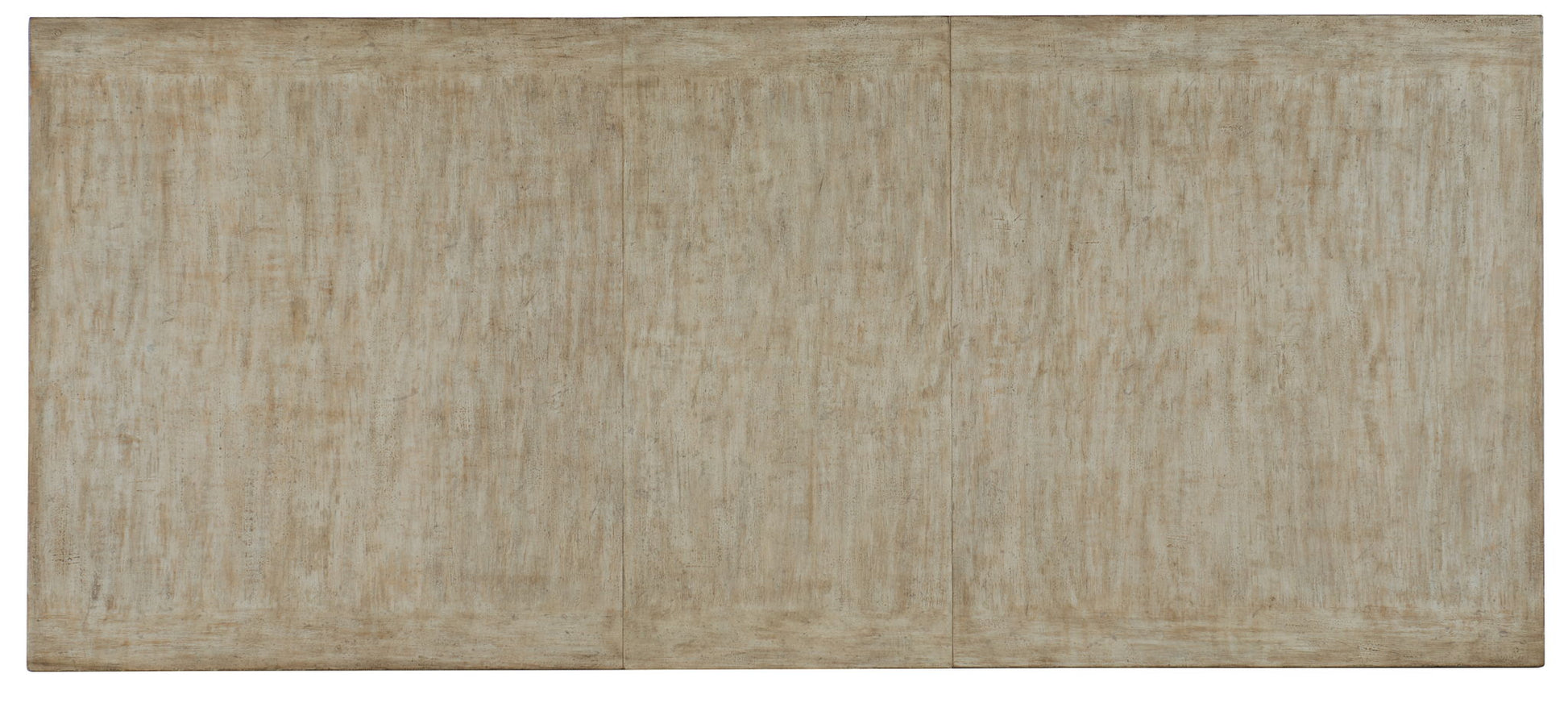 Enjoy a European farmhouse vibe as you gather around the charming Vittorio 80-inch rectangle table with an X- trestle base with a sliding stretcher. Gatherings can be intimate or large: the table will accommodate four side chairs and two arm chairs with no leaves, six side chairs and two arm chairs with one leaf, and eight side chairs and two arm chairs with both leaves used. Crafted of Oak Veneers with a solid-wood edge top, the Light Tusk finish is a taupe color with distressing, hand-planing and scraping for casual authenticity.
