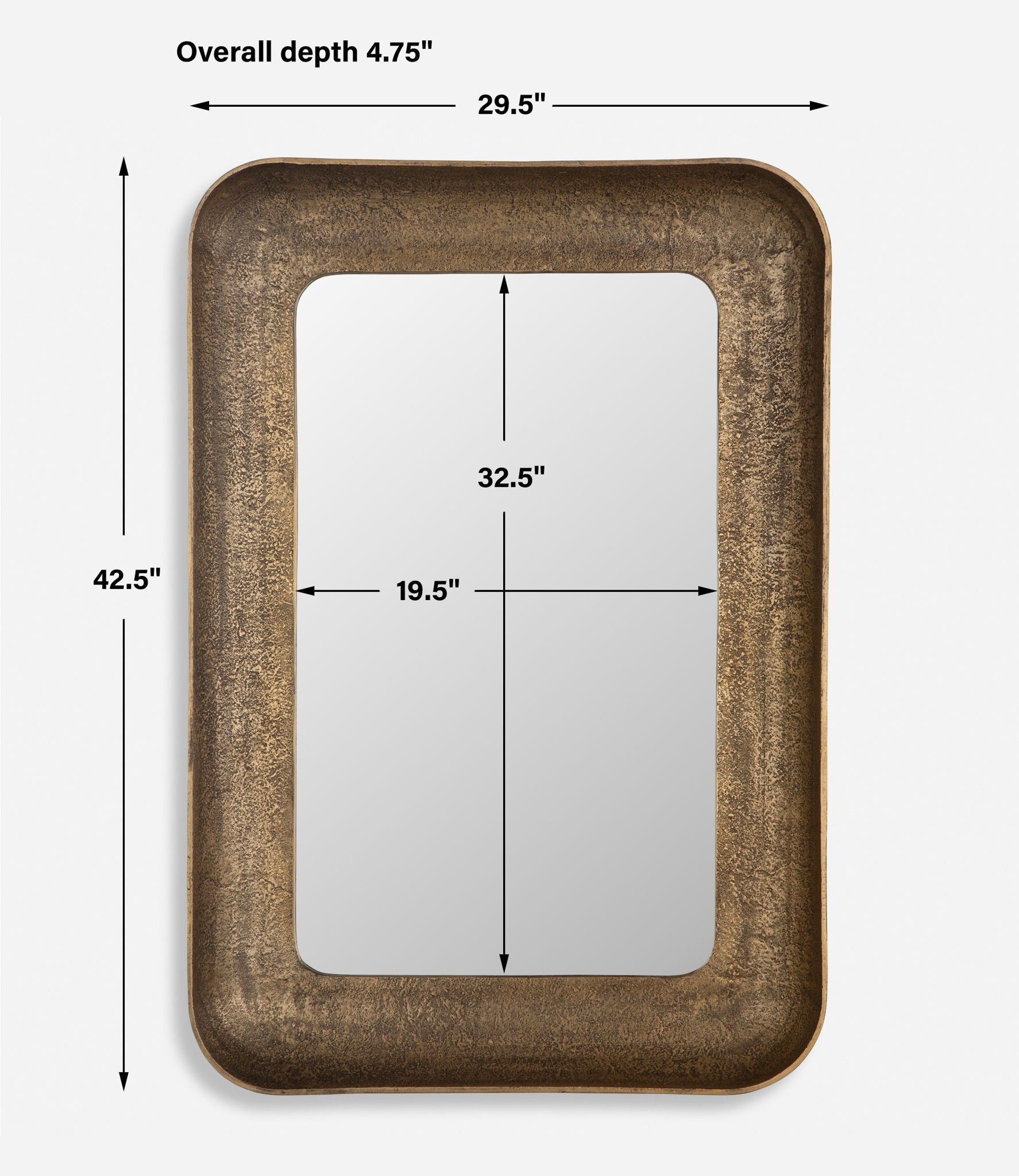 Crafted From Cast Aluminum And Finished In A Lustrous Plated Antique Brass, The Alvaro Mirror Boasts A Deeply Sloped Profile That Features Texture And Intentional Imperfections That Add A Touch Of Artisan Charm.