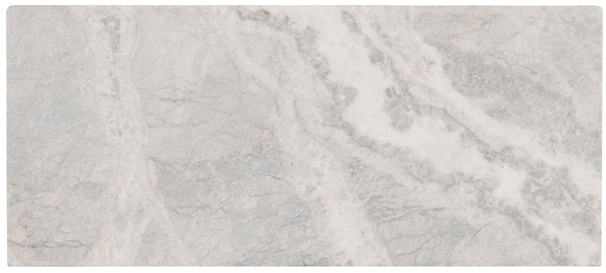 The modern yet casual style of the Amani Chest evokes a place of refuge and retreat with its tranquil mix of natural materials. The case is crafted of Pecan, Maple and Oak Veneers with a Crema Marble top. The tactile Brie finish is a grey tone with organic reeded details and a diamond pattern on each of the three drawer fronts. Silver-colored tab pulls add a sparkle.