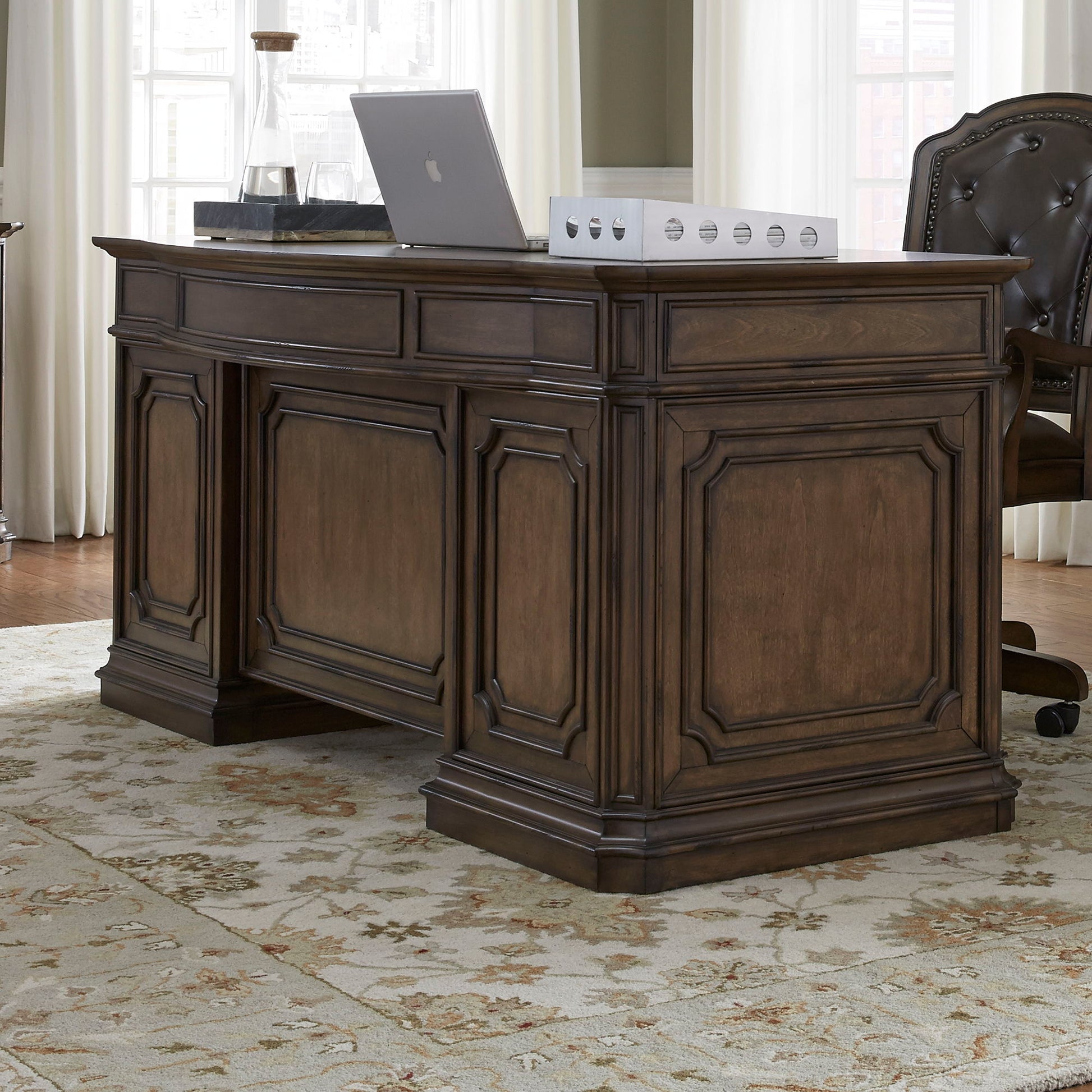 Features seven full extension drawers for easy access to storage and two locking file drawers. Also offers chamfered corners, bead molding, framed drawer fronts and wire management provisions to conceal wiring. Cannot stand alone. Pair with the top to make a complete desk
