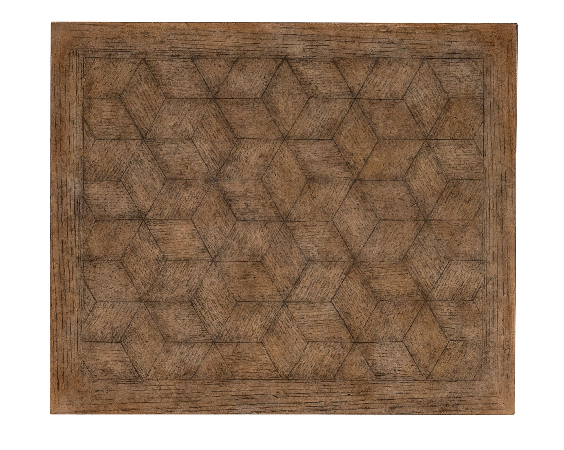 Reimagining an historical design with a fresh take on finish, function and form, the stunning Americana Trestle End Table has a two-tone finish combining a parquet Oak Veneer top design with a Molasses finish on the base. Capturing the essence of a well-loved heirloom, the deep dark Molasses tone over Cathedral Oak Veneers adds warmth, while the variations in color reveal the natural beauty of the wood beneath. The base is an interlocked carved stretcher design. Solid-wood edge top.