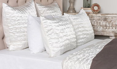 A subtle sheen and hand quilted design make for a luxurious dreamy bedroom escape. Perfect for all seasons, this stylish collection is lofty, relaxing, and easy to style.