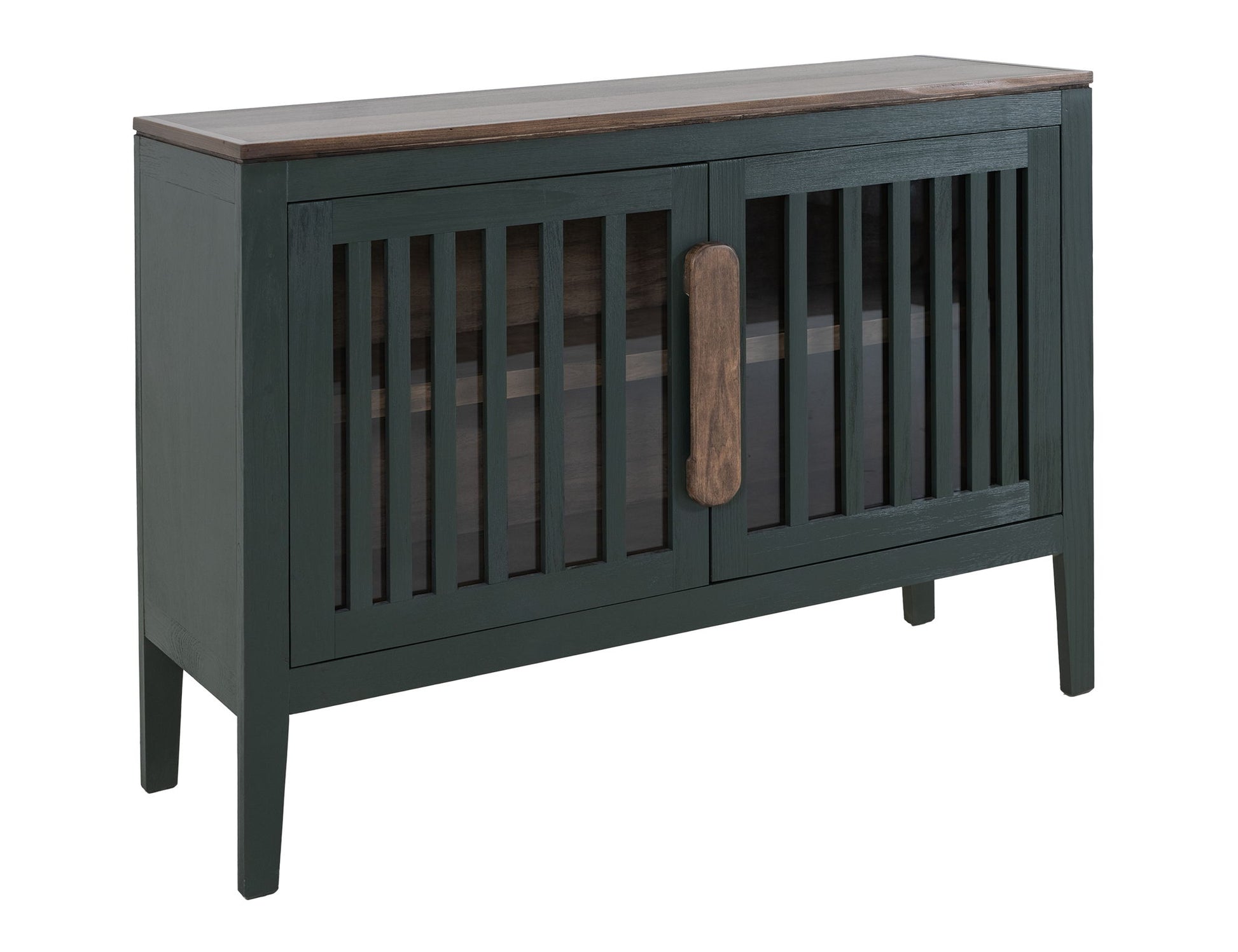 The console features a well-thought-out design, including a fixed shelf for convenient storage; this allows you to keep your space organized while displaying decorative items. The slatted doors, equipped with overlay hinges and magnetic catches, ensure secure closure, combining functionality with style. The integrated wooden handles, finished in a warm, enhance the overall aesthetic, while the unique floated top design adds a distinctive touch.