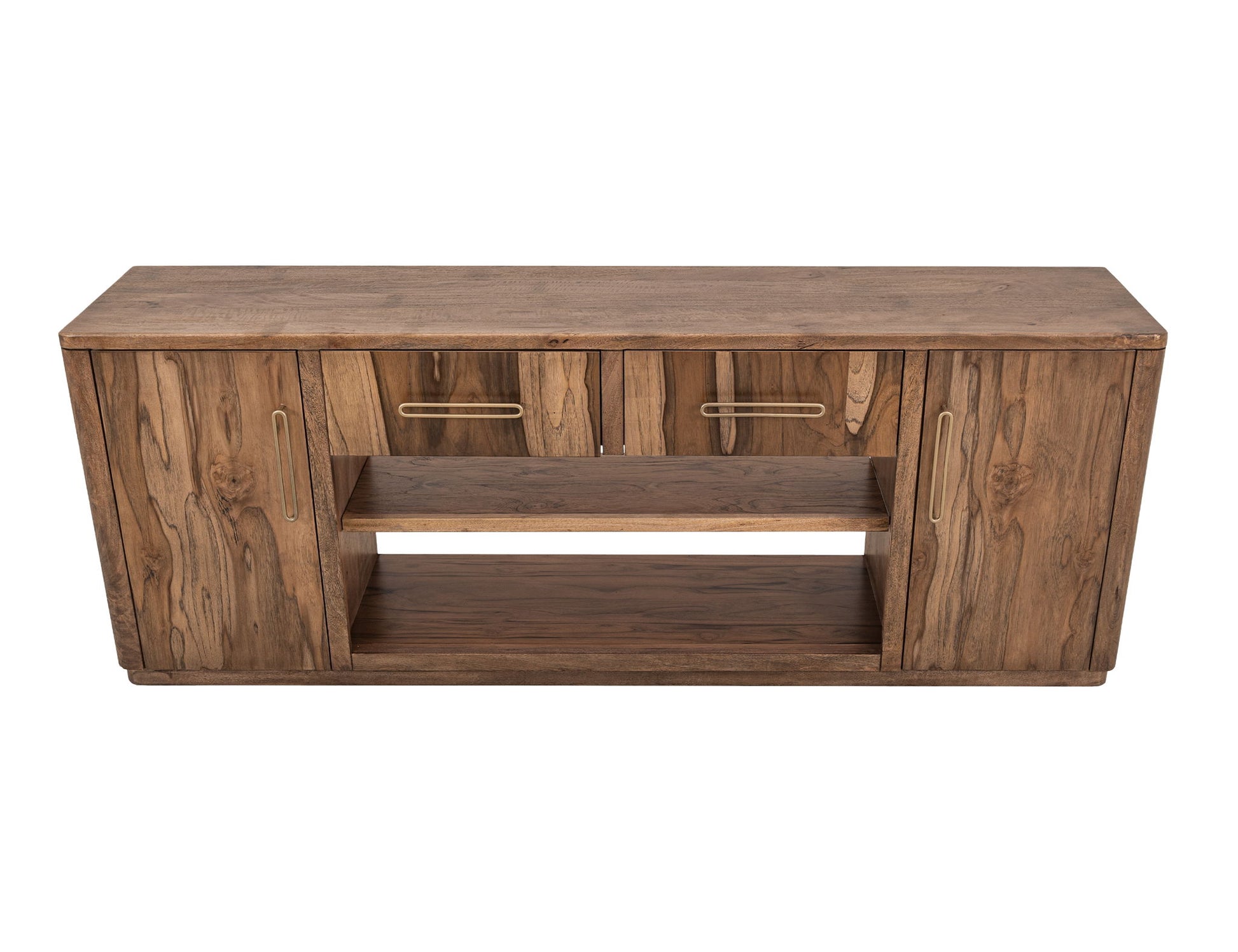 2 Drawer & 2 Door TV Stand, 80" for Fireplace. Our Balam collection is handcrafted from mango and teak wood. This simple yet stunning collection will bring an organic, modern touch to your space. This 80-inch TV stand becomes the heart of your living space, featuring two drawers and two doors for ample storage and a design that highlights the wood’s unique grain. Now enhanced with a fireplace insert, it offers not only style but also a cozy ambiance. Pair it with two matching piers to form a stunning wall unit that frames your space with harmony and sophistication. Every detail speaks of artistry, transforming your home into a sanctuary where modern design meets timeless warmth.