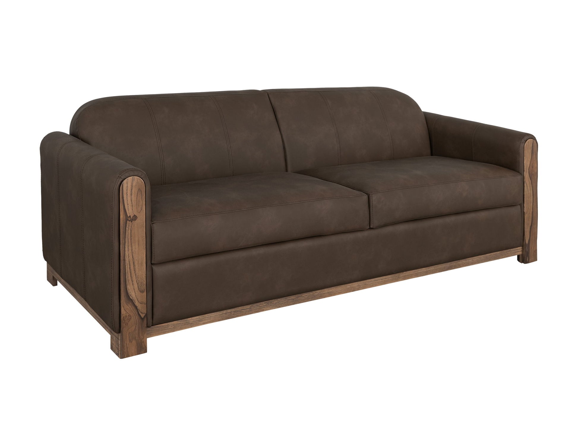 Wooden Frame & Base, Two-Cushion Sofa. The Balam collection features a simple and elegant design. The sturdy frame is made from pine and teak veneer and carefully finished to create a timeless and sophisticated look. Skilled artisans upholster each piece in premium fabrics that complement the natural beauty of the wood. Designed for both comfort and style.