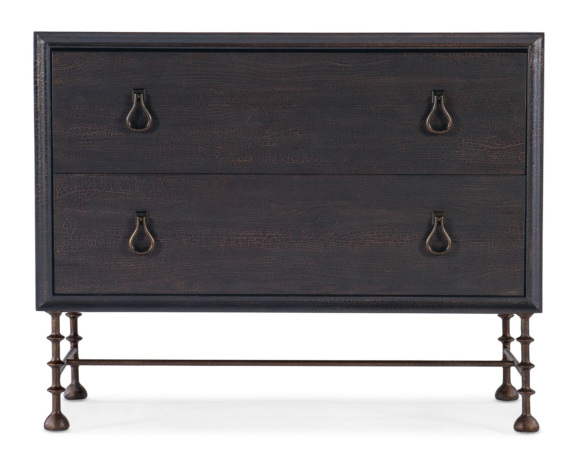 Warm and rustic, the Big Sky Bachelor’s Chest has a vintage design pairing a case crafted of rustic Pecky Hickory Veneers in the dark Charred Timber finish with turned metal legs and stretchers. Featuring two drawers, the top drawer has a removable felt liner and the bottom drawer is cedar-lined. There’s an FC707 power bar with 3 electrical outlets and one live USB port and a cord clip on the back.
