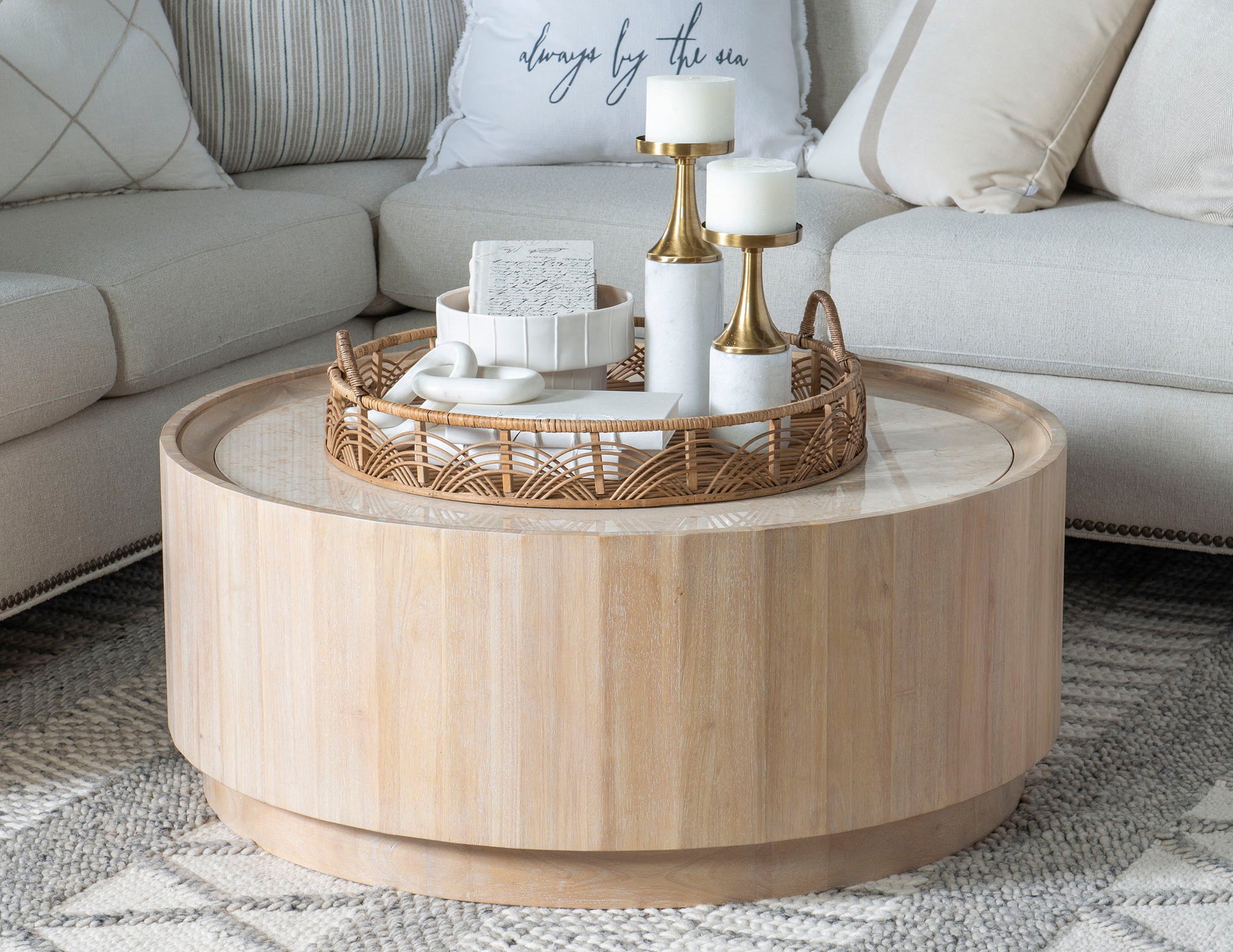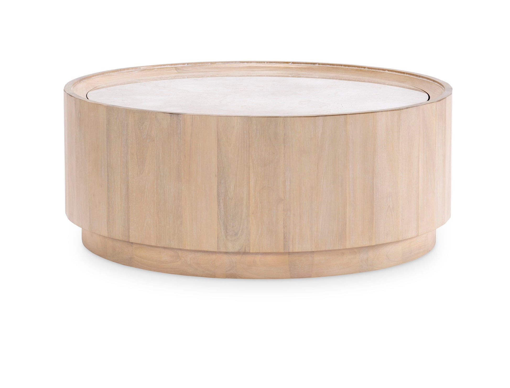 Biscayne - Round Cocktail Table With Travertine Top - Beige