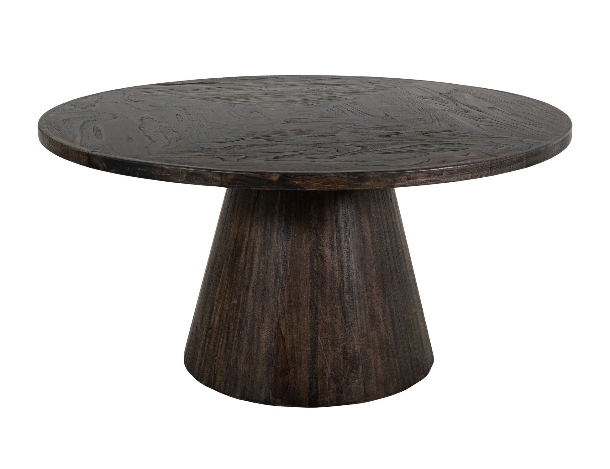 Round Table Top. Our Balam collection is handcrafted from mango and teak wood, offering a simple yet stunning addition to your space with an organic, modern touch. The Balam table features a sturdy, conical wooden base that showcases the beautiful, natural grain of the wood, providing a solid foundation for the smooth, round tabletop. Elevate your dining experience by pairing this table with the stylish chairs available in the collection, creating an inviting atmosphere in your home.