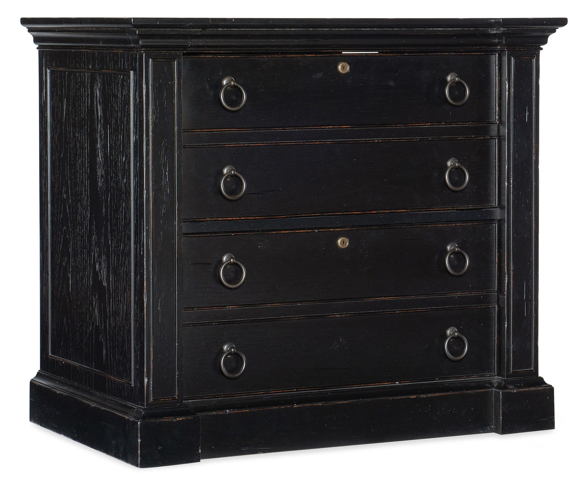 Casual yet refined and stylish, the versatile Bristowe Lateral File sets a professional and inviting tone for any work-from-home space, or provides vital storage for organizing your household. Crafted of Pecan Veneers in a Tuxedo black paint finish with touches of warm brown, the file features two locking file drawers with a pendaflex filing system with locks on the front of the drawers. Drawers are on metal ball bearing full-extension slides.