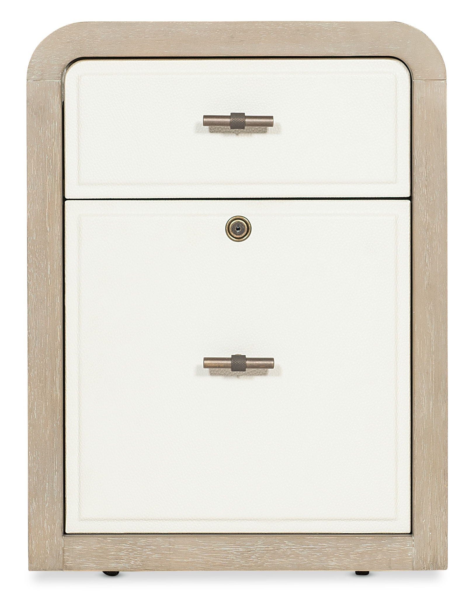 The Brixton Mobile File is a versatile office storage solution that blends modern design with functional storage. Crafted from elm veneers, its two-tone finish of pebble-hued wood and ivory leathered drawer fronts gives a sleek, contemporary aesthetic. The mobile file features one locking file drawer, a utility drawer, and hidden storage with a drop-down touch latch, perfect for organizing your home office essentials. Its casters ensure mobility while keeping your office space clutter-free.