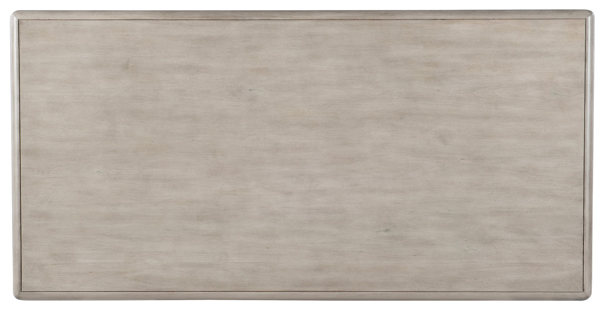 With a soft modern and casual appeal, the Burnham Writing Desk is crafted of Alder Veneers with knots in a Grey Mink finish with dark bronze knob hardware. Featuring 4 drawers, the left drawer is a file drawer with pendaflex system and full extension metal ball bearing slides. The Center drawer has a drop-front for keyboard use and wire cutout in the back of drawer. The top right drawer has a removable pencil tray, inserts and removable writing slide with full extension metal ball bearing slides. The right bottom drawer has a false bottom with finger hole for hidden storage and is on full extension metal ball bearing slides. Finished on all sides.