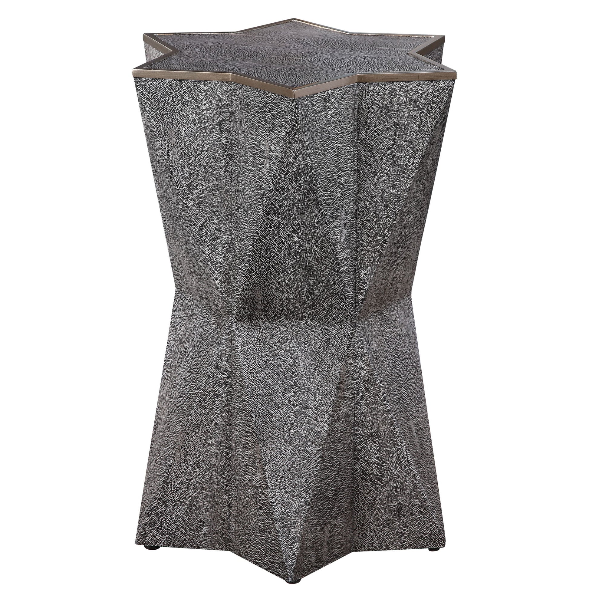 Unique Star Shaped Accent Table Features A Charcoal Gray Faux Shagreen Wrap, Accented With A Hand Applied Gold Leaf Trim.