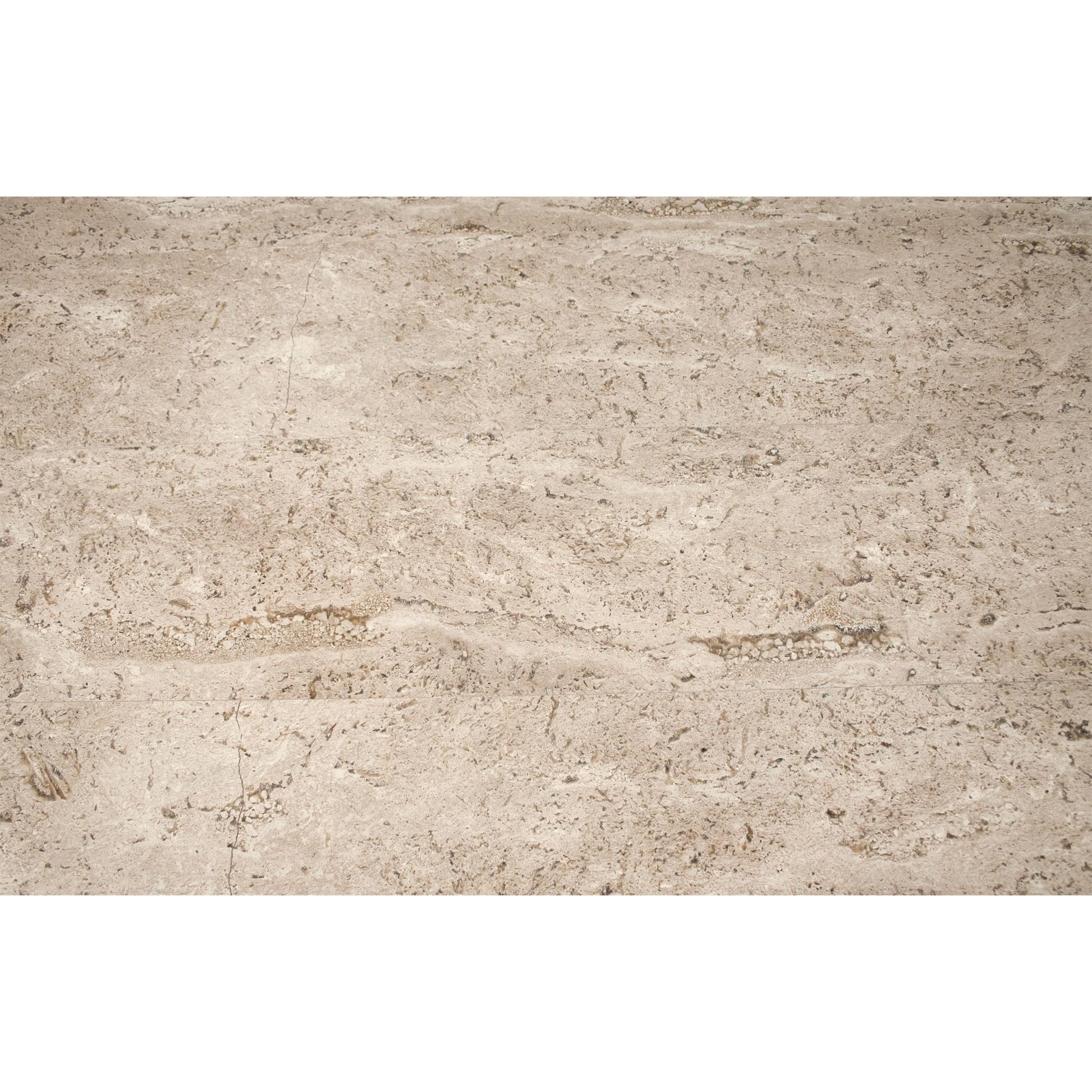 - The travertine top is not a solid slab but is composed of a marine plywood core which thin pieces of stone that are laminated to the core like tile