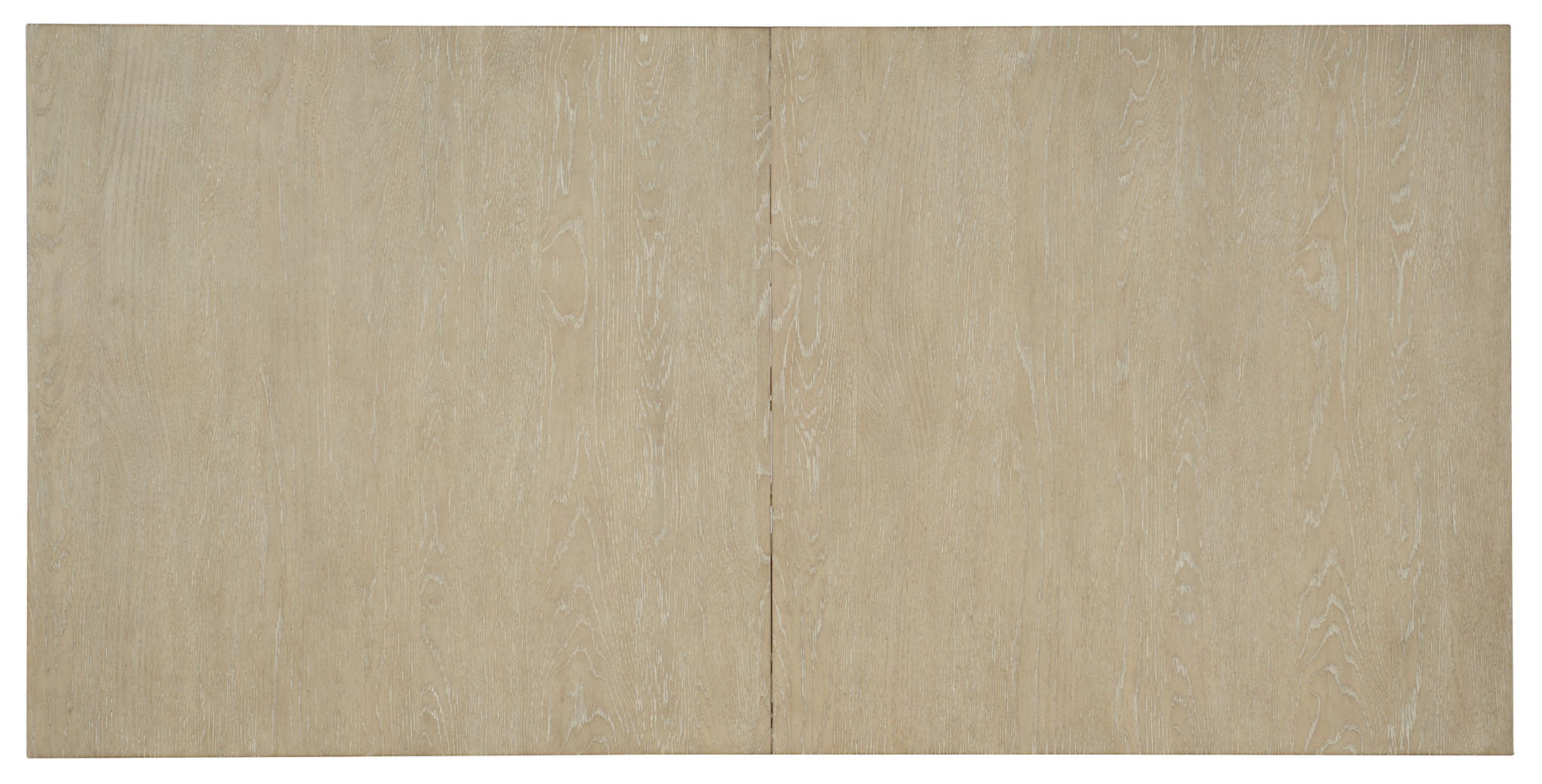Linger for memorable meals with family and friends at this inviting modern farmhouse-styled table that offers a retreat from your fast-paced lifestyle. Crafted of Oak Veneers, the Cascade Rectangle Dining Table features a stretcher that joins the 2-pedestal base, with the entire base finished in a creamy-colored textured gesso with crackle. The tabletop is a soft taupe finish on oak veneers with dry brushing. With one 22-inch leaf, the table extends to 106 inches long, accommodating 2 arm chairs and 6 side chairs.