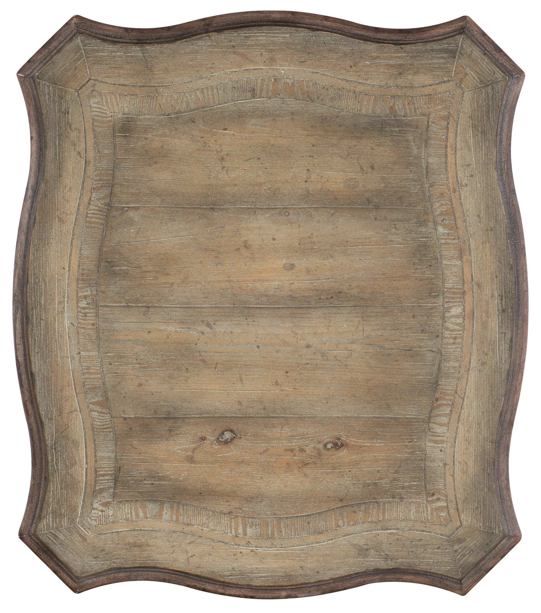 Old World charm and classic design elements like shaped and fluted legs are updated with a relaxed rustic finish with the look of natural wood bathed in sunshine in the Castella End Table. Crafted of Pecan, Quartered Walnut, Black Walnut, Ash and Maple Veneers, the table exudes a livable resort feeling. One drawer and one fixed shelf.