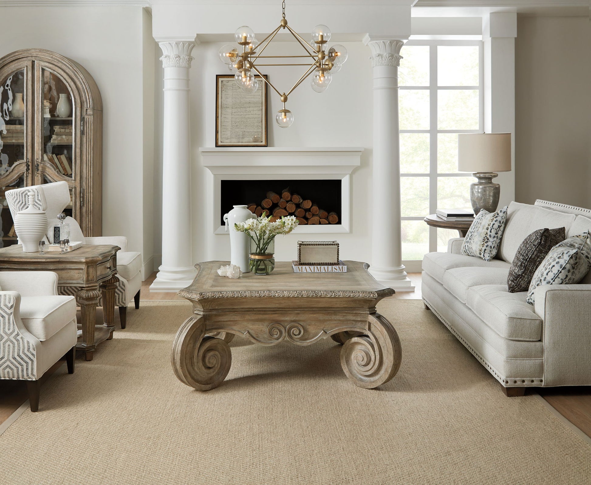 Castella’s over-the-top (and fabulous) cocktail table is punctuated by generously scaled scroll legs and a beautifully carved apron. And it has a grand presence at nearly 40 inches square - it will draw your eye to the seating area and be a dramatic surface for accessories and storage. The refined rustic Antique Slate finish projects laid-back luxury.