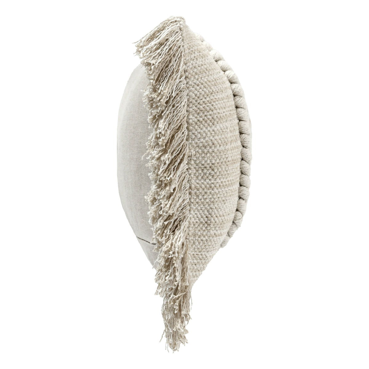 Richly textured with an organic, tonal palette, this pillow draws from the look of a straw harvest bundle. Woven Mélange fabric and rope details add visual interest while fringe edges bring movement to the piece along with playful, touchable appeal.