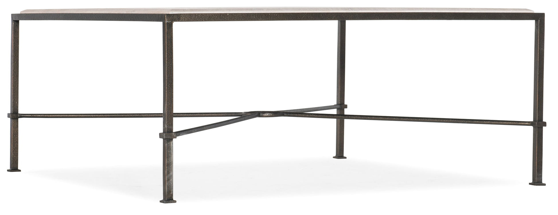 In a light-and-airy style that’s a breath of fresh air, this distinctive cocktail table has a dark charcoal textured metal frame, base and X-stretcher and a creamy beige marble top in a blend of neutrals to fit in a wide range of interiors.