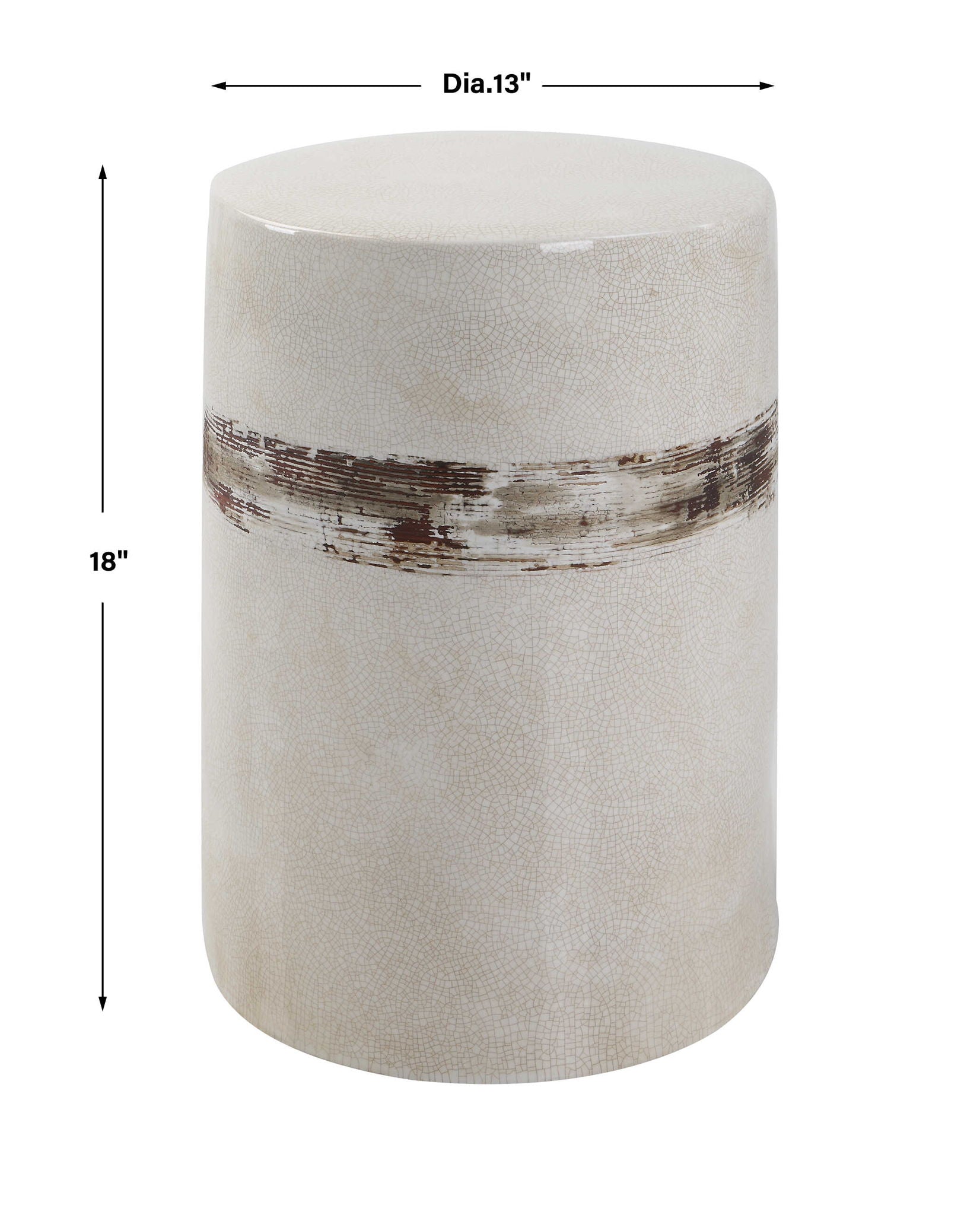 Showcasing A Rustic Casual Look, This Ceramic Garden Stool Features An Off-White Crackle Glaze With Distressed Rust Brown Details And Noticeable Ribbed Texture. May Be Used Outdoors, But Protection From Freezing Temperatures Is Recommended.