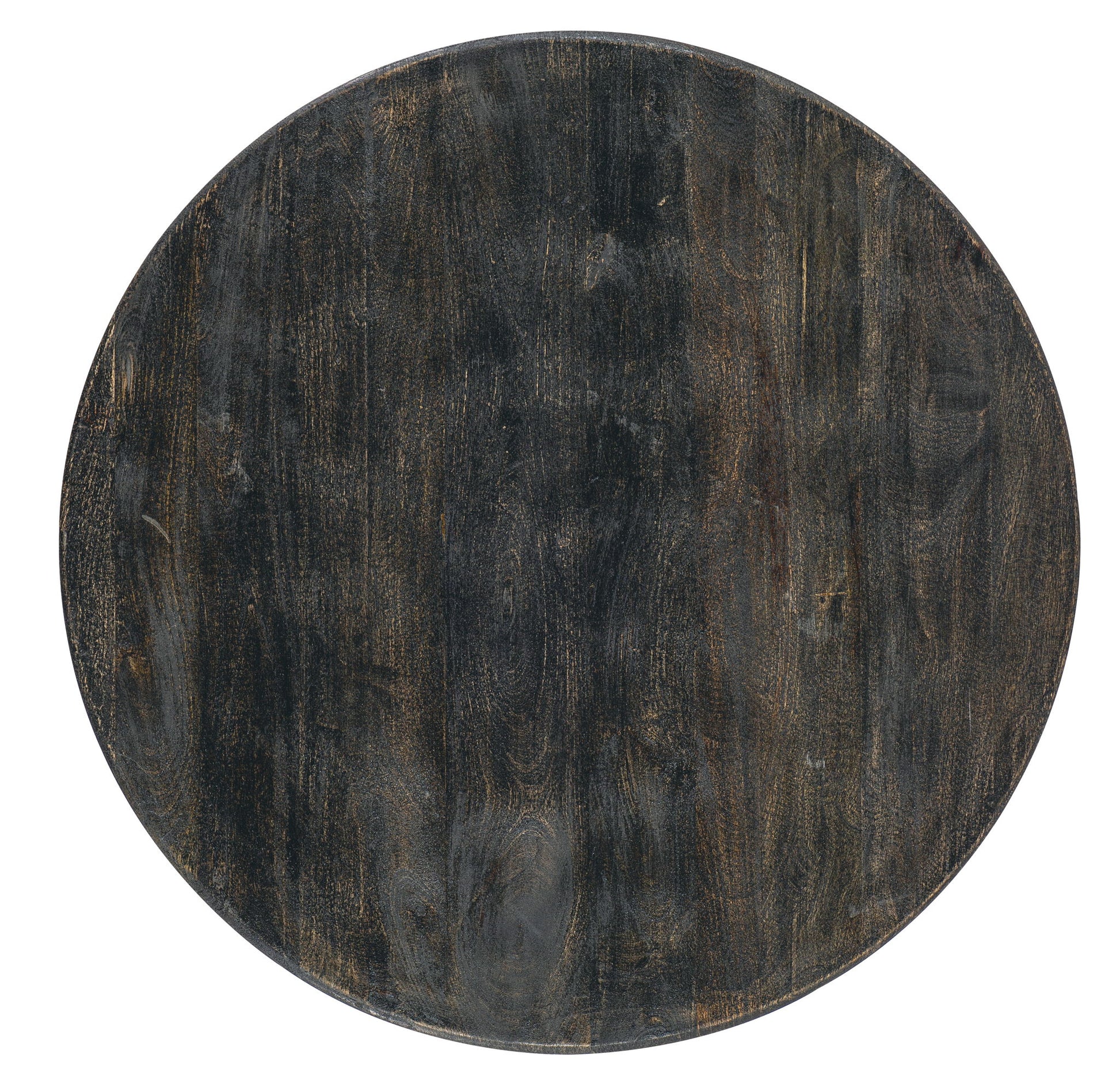 Globally inspired and authentically designed, the round pedestal Arness Cocktail Table is crafted of Mango Wood with a transparent black finish revealing natural color and grain variations for a casual rustic appeal.