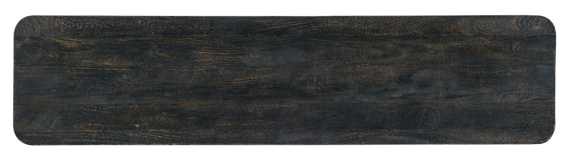 Globally inspired and authentically designed, the narrow Arness Console Table is crafted of Mango Wood with a transparent black finish revealing natural color and grain variations for a casual rustic appeal. At only 16 inches deep, it fits in even tight spaces.