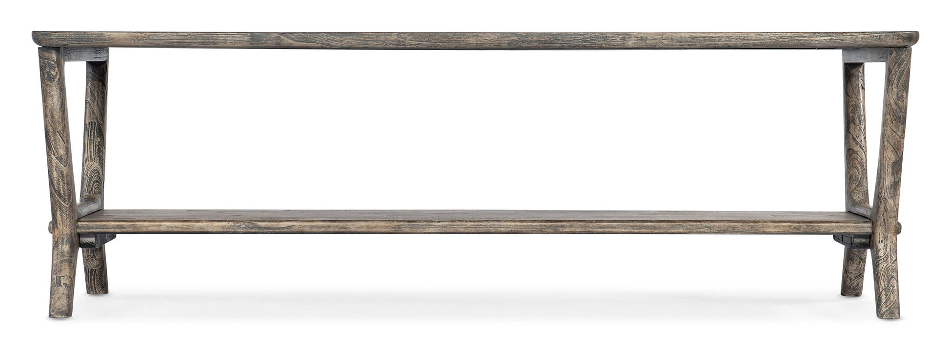 Projecting a chic boho vibe, the Brandon Table is crafted of Mindi Solids and Veneers in a natural transparent wood finish that reveals natural color and grain variation for a casual authenticity. One fixed shelf.