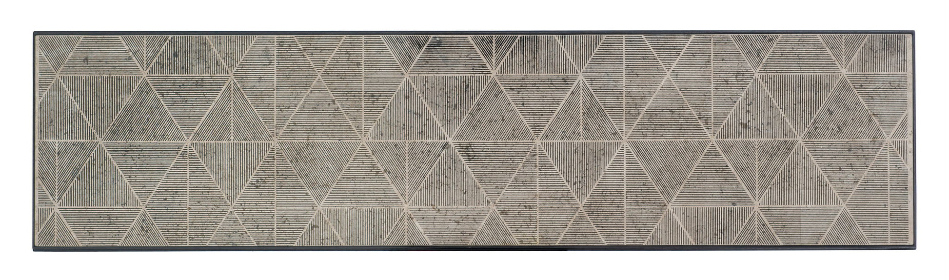 - Travertine stone top with screen printed design