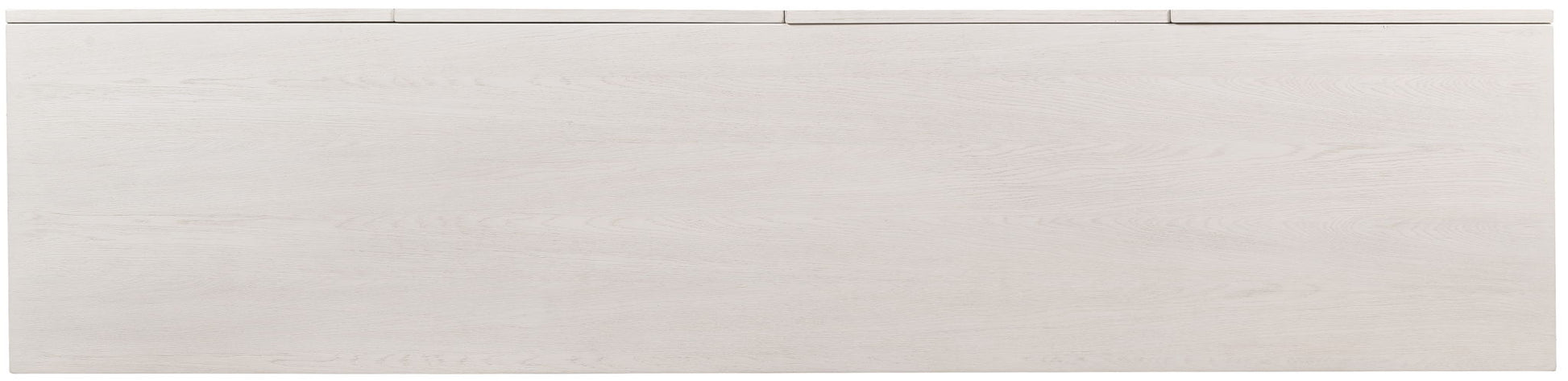 Whimsical and organic, the Pilea Entertainment Center is crafted of Oak Solids and Veneers with a light finish accented by inset green ceramic pulls in a lily pad design. Measuring 80 inches wide by 18 inches deep, it has four doors with soft-close hinges and touch latches. There’s one adjustable wood shelf behind each left and right door and one adjustable shelf behind the center pair of doors. Features wire management and a ventilated back panel behind all doors.