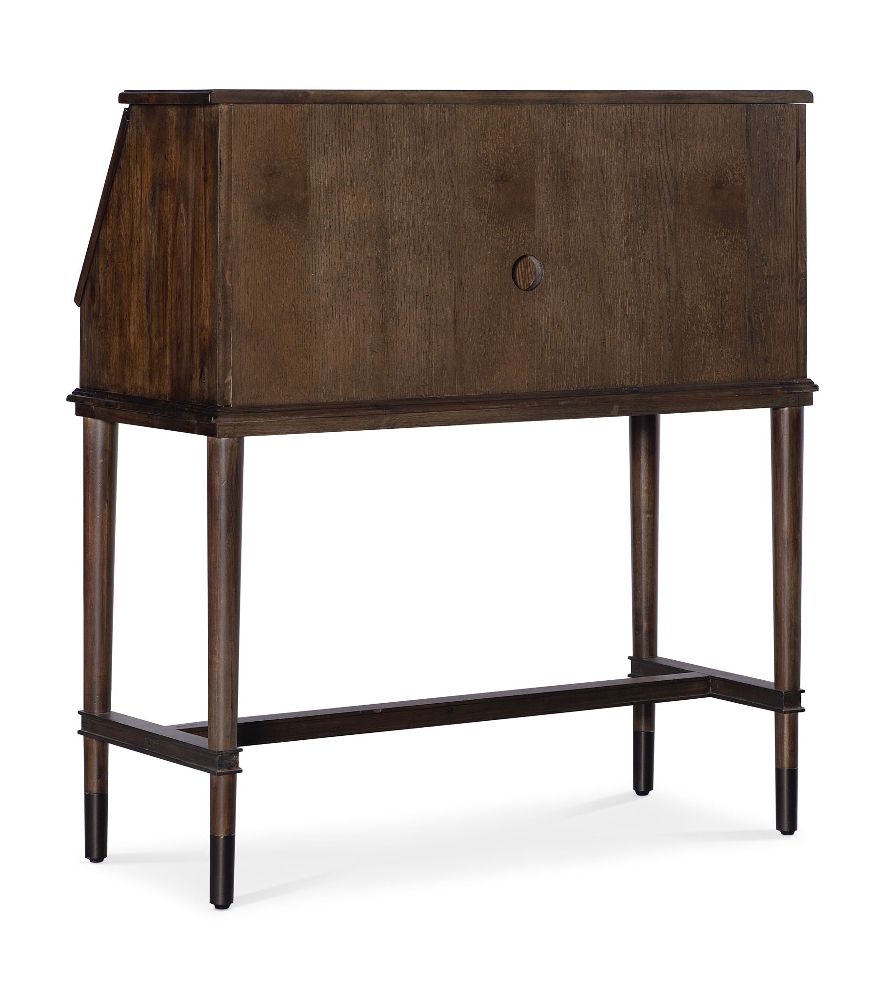 A retro, nostalgic silhouette is updated for today in the Commerce & Market Secretariat Secretary. Crafted of Clean Acacia Solids in a dark natural wood finish, it features a drop-down work surface, two pullout supports, one center drawer, two tray drawers inside the drop-front and two removable wood shelves inside the drop-front and wire management. Wood stretchers on the sides and back complement the slender legs with metal ferrules.