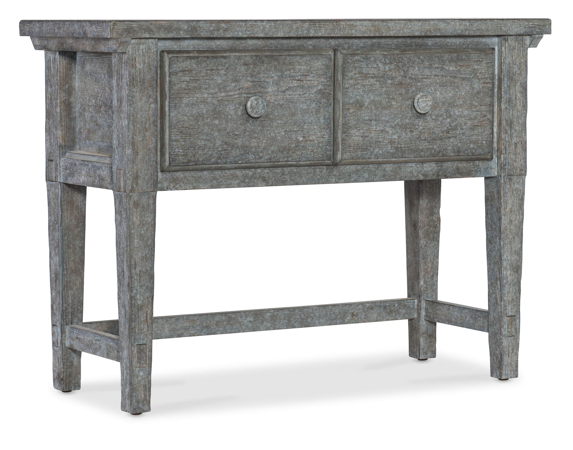 With a Belgian design aesthetic, the Stonewashed Console expresses the elegance of simplicity and the essence of inviting casual style. Crafted of Pine Veneers with a distressed blue finish, tapered legs and an interlocking design on the stretcher and frame, it has two drawers with soft-close guides.
