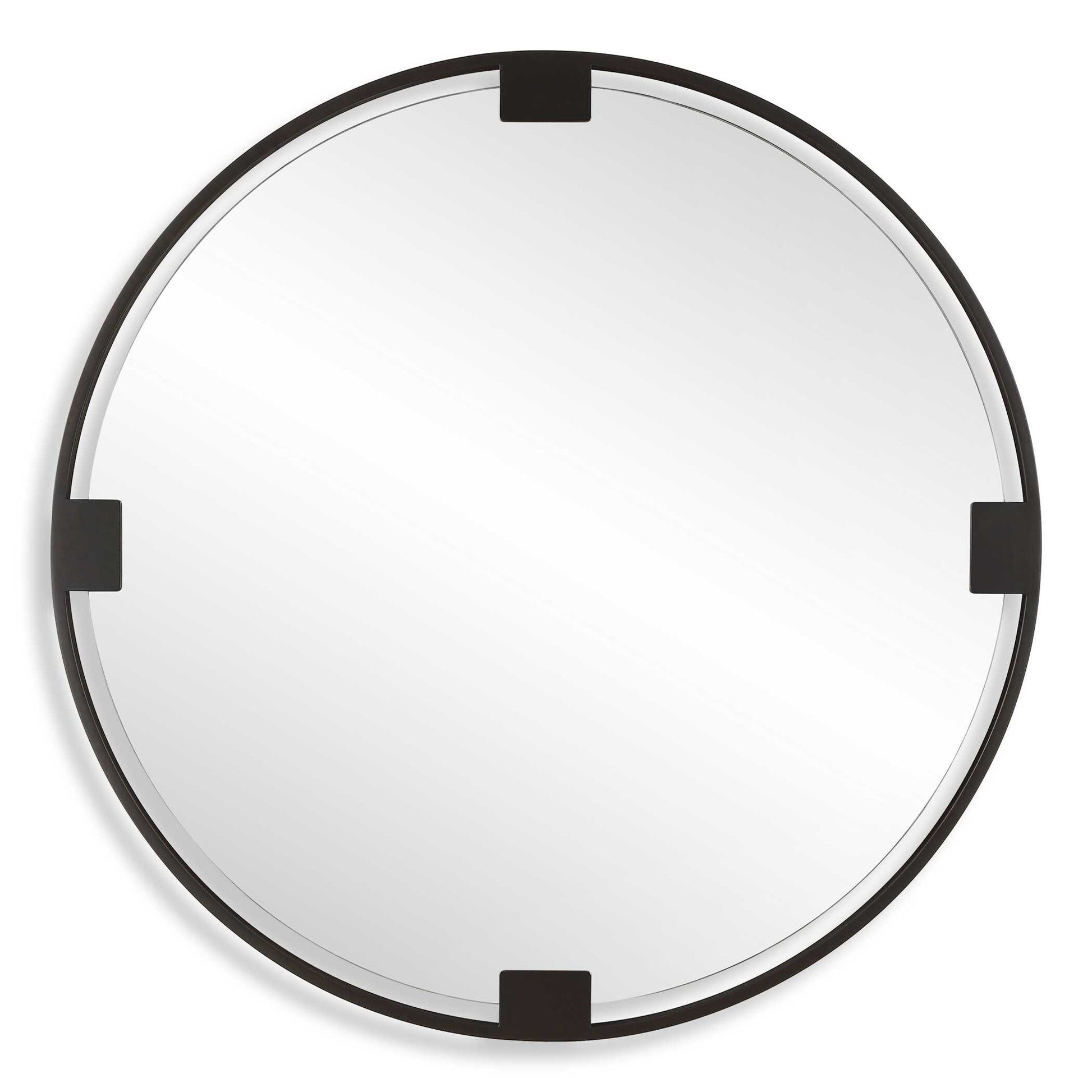 This Round Mirror Is Crafted With A Hefty Dark Bronze Iron Frame, Adorned With Matching Bands That Suspend A Polished Edge Mirror For A Look That Exudes A Timeless Charm That Complements Any Decor Style.