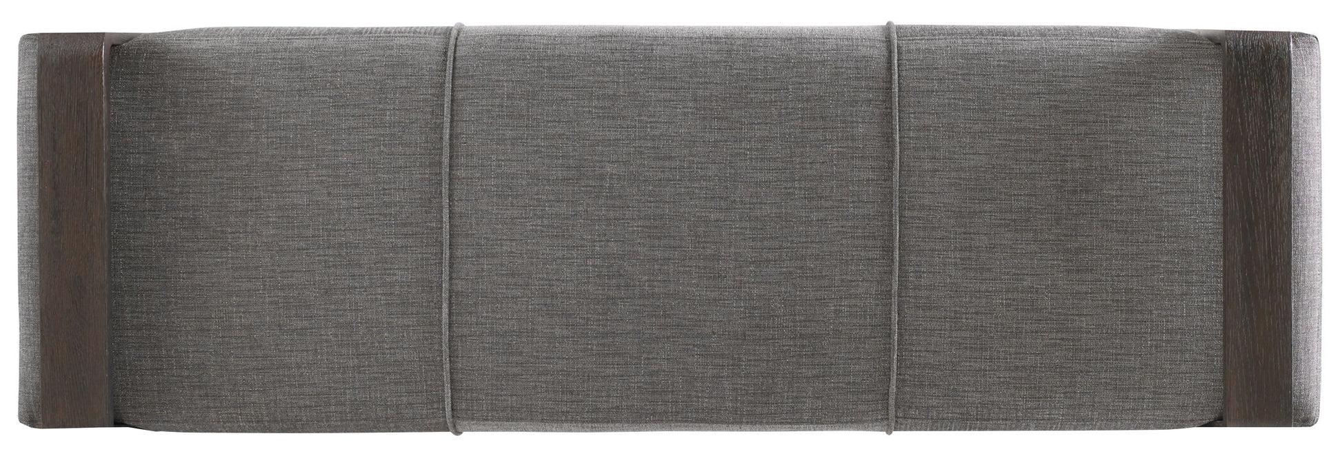 Chic, modern and inviting, the graphite gray upholstered seat of the Curata bench appears to be floating between the softly rounded rectangle ends finished in the deep brown Midnight.