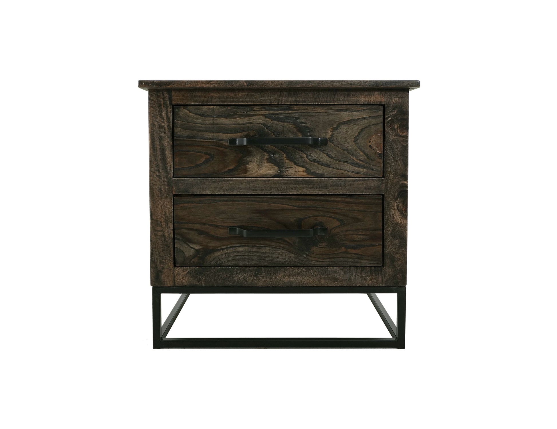 2 Drawer Nightstand. Enhance your space with our exquisite Dark Teak Collection. Crafted from beautiful Mango and Melina wood and engineered Teak, this collection showcases the natural beauty of the wood grain. Designed to elevate your home, it creates a relaxing and inviting atmosphere. Explore our collection today and discover how to elevate your home with timeless elegance!