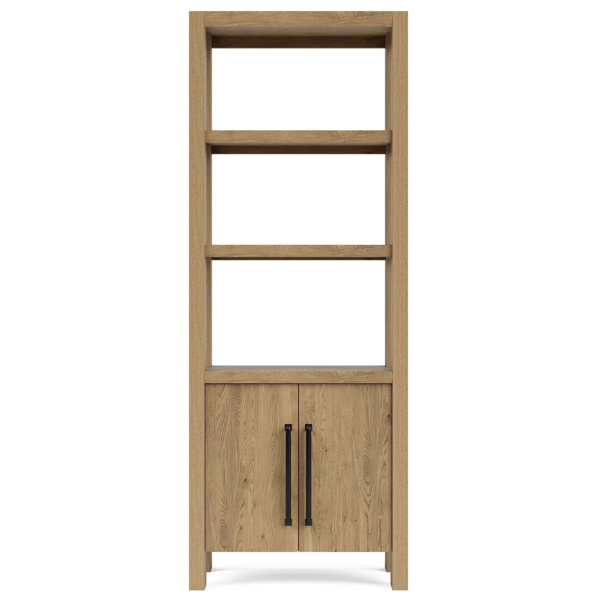 - Bottom pair of doors enclose an adjustable shelf