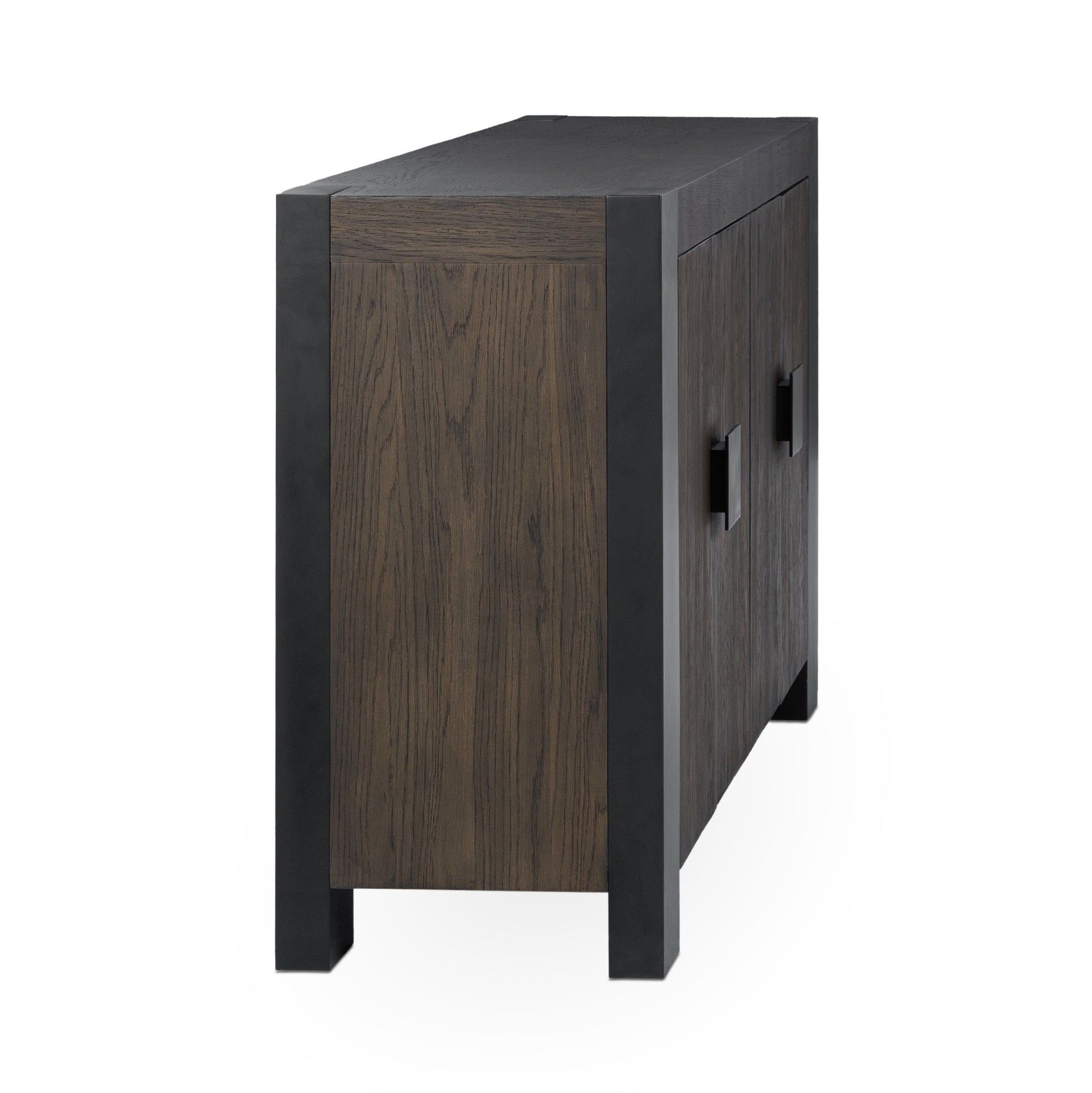 Minimalist yet modern, a masterful blend of form and function, our Deaven 4-Door Buffet is defined by clean lines and rich textures. Warm oak veneer softens the industrial strength of its metal frame, creating a timeless piece that seamlessly integrates into modern interiors.