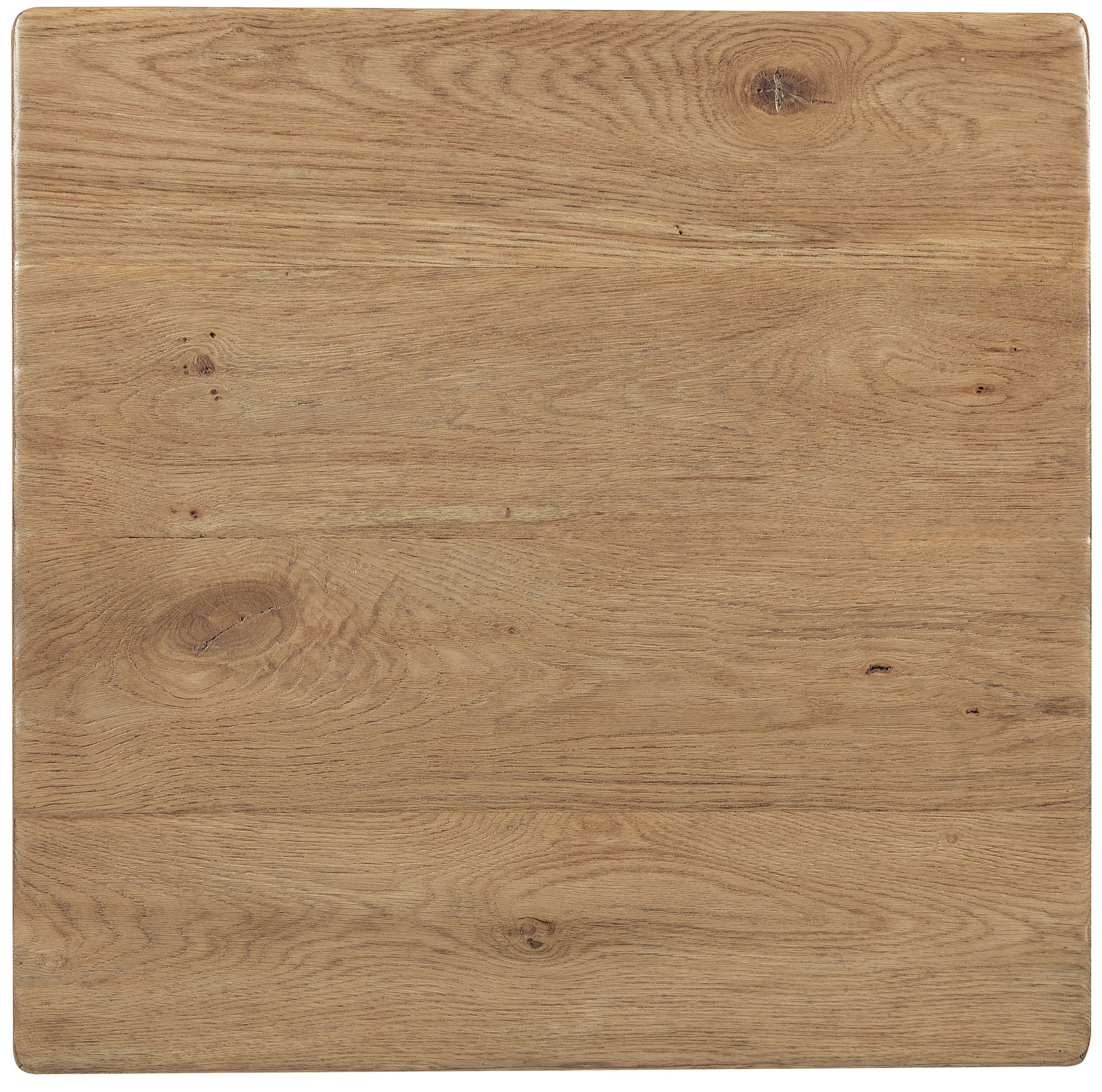 This square end table is perfect for creating a bold accent in a living room. The pedestal base and oak veneer construction provide structure and style in equal measure.