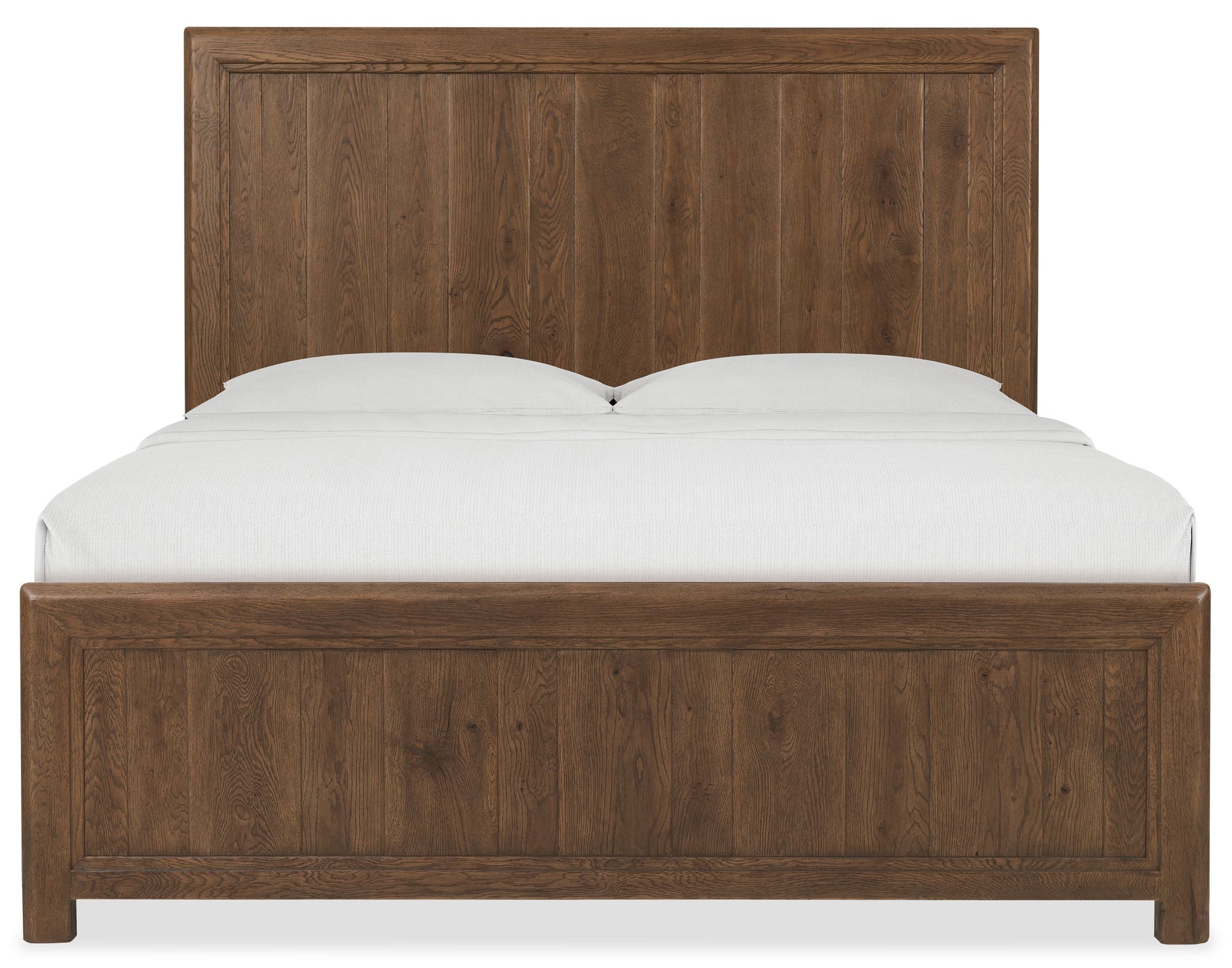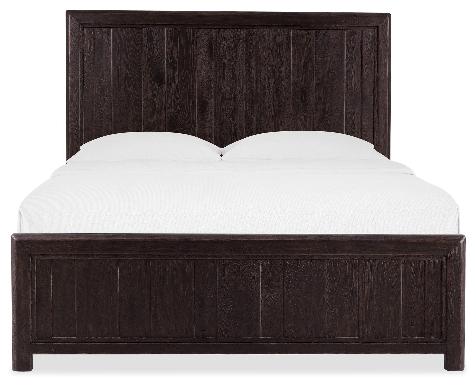 The Burnt Timber Panel Bed exudes bold sophistication. Made from oak solids and veneers, this version offers a darker aesthetic with the same durable design.