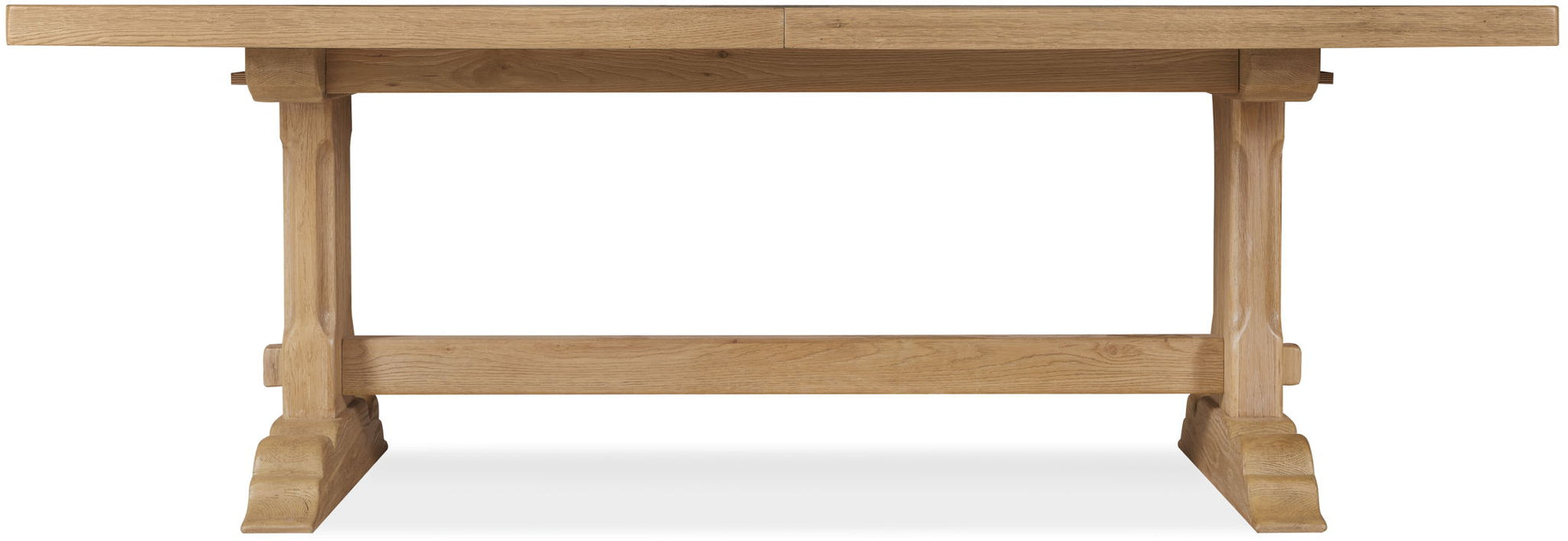 The Driftwood Rectangle Dining Table brings a sense of relaxed, rustic elegance to your dining room. Its warm, sun-faded oak tones and double pedestal base create a casual yet refined look perfect for open, inviting spaces. Designed for flexibility, the table extends to 126 inches with two 20-inch leaves, making it ideal for hosting gatherings with ease. This table appeals to consumers who love understated farmhouse charm paired with timeless craftsmanship.