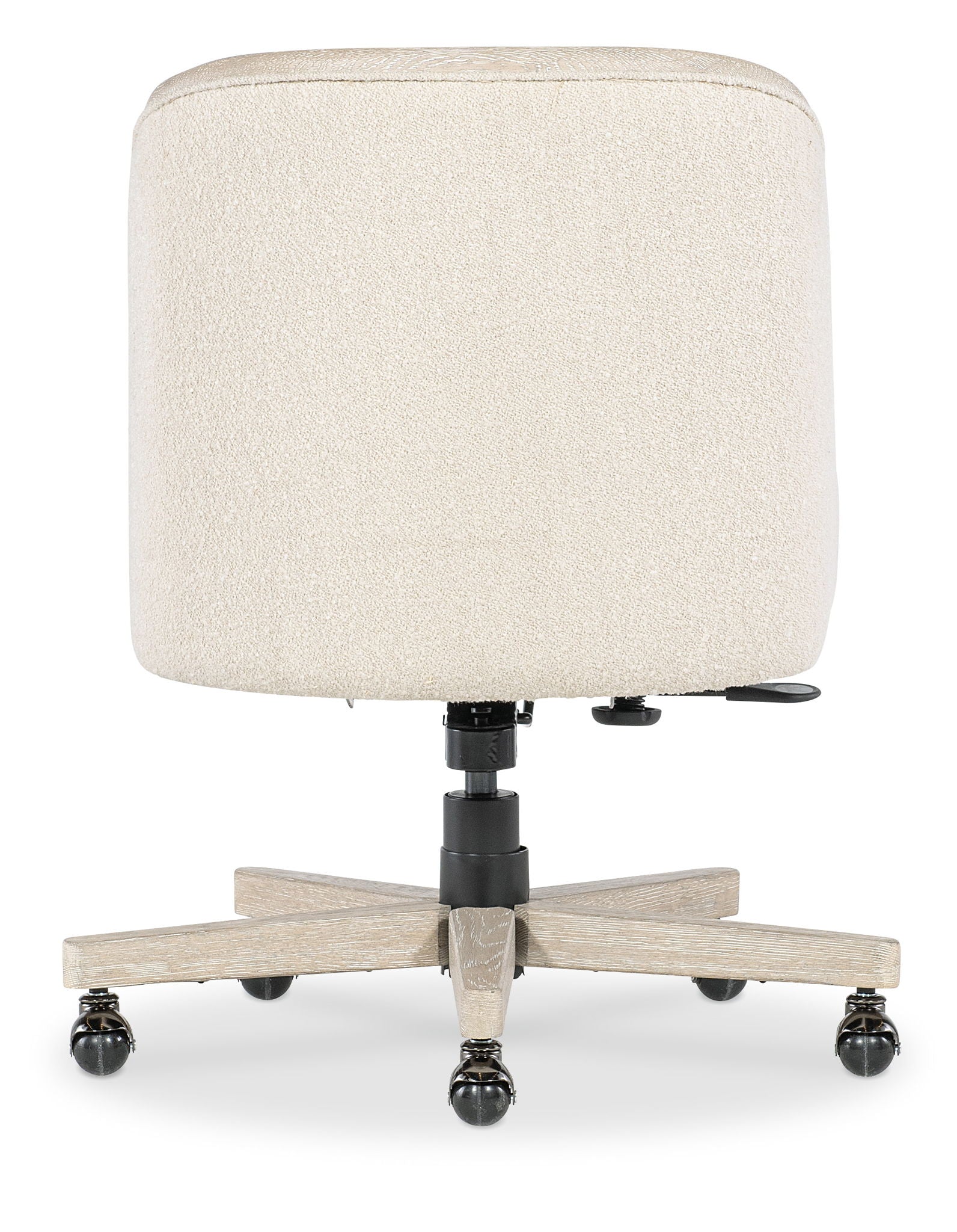 Discover the Paloma Executive Swivel Tilt Chair in the timeless, designed by Hooker Upholstery for contemporary home office spaces. Featuring a barrel back design this chair exudes a classic aesthetic. Upholstered in fabric with easy-care properties, it offers adjustable height, swivel motion, and a sturdy wood trim and base. Ideal for professionals seeking comfort and style in their home workspace setup.