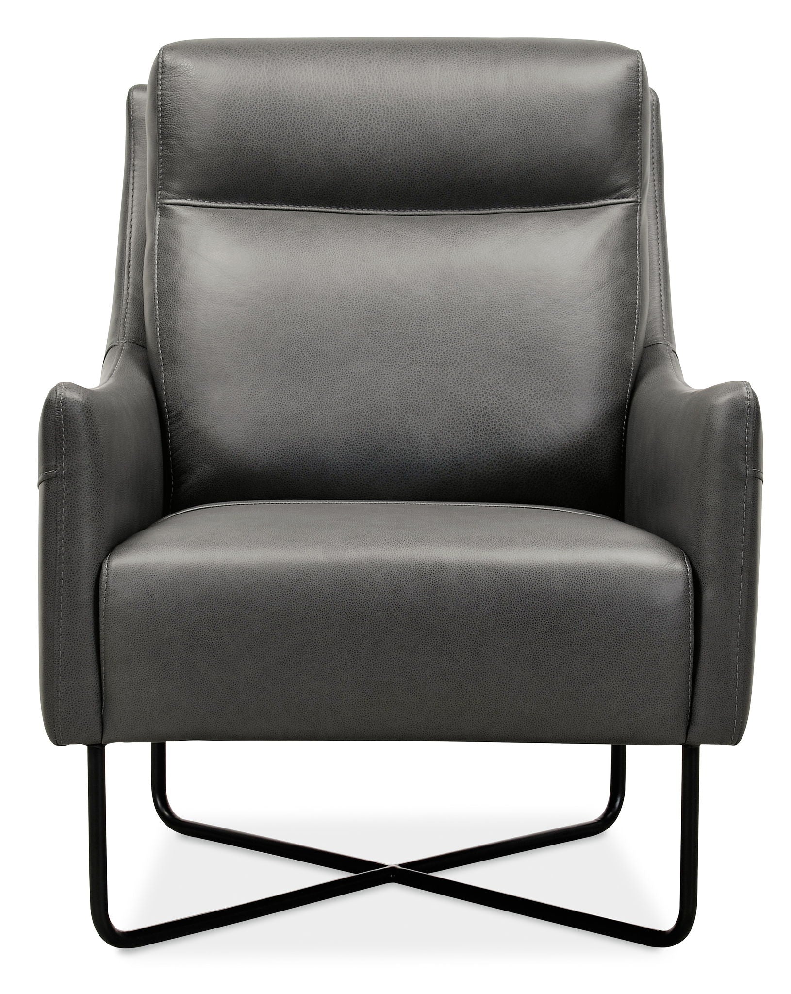 Sloping arms, a pub back and a sculptured silhouette distinguish the sleek modern Efron Club Chair. Featuring an interlocking “X” motif metal base, the chair is upholstered in the semi-aniline top grain Rangers Gravel leather.