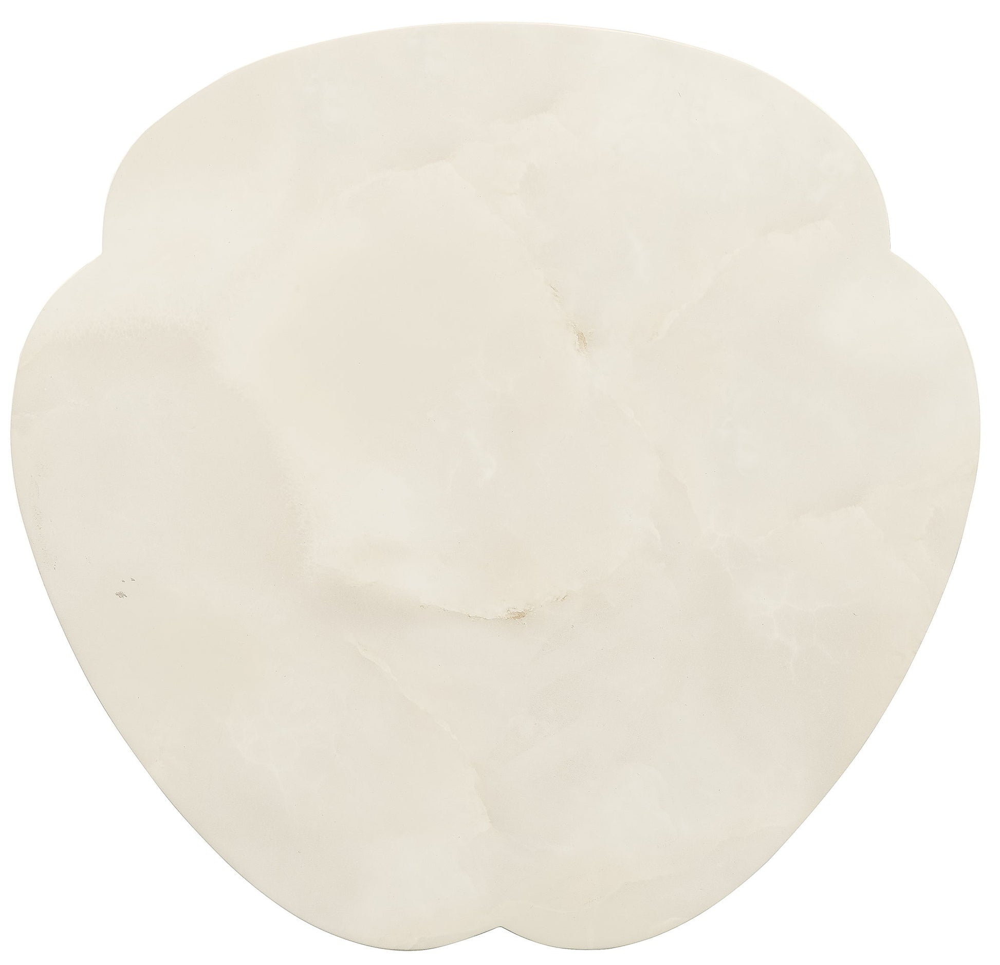 Sculptural and versatile, the Eleana Accent Table in a faux onyx water-transfer finish is the perfect finishing touch for a modern living room. Its cloverleaf silhouette and compact size make it ideal as a side table, drink table, or decorative pedestal. Finished on all sides for flexible placement, this table combines creamy tones with a smooth, glossy texture, offering a contemporary yet timeless vibe for transitional interiors.