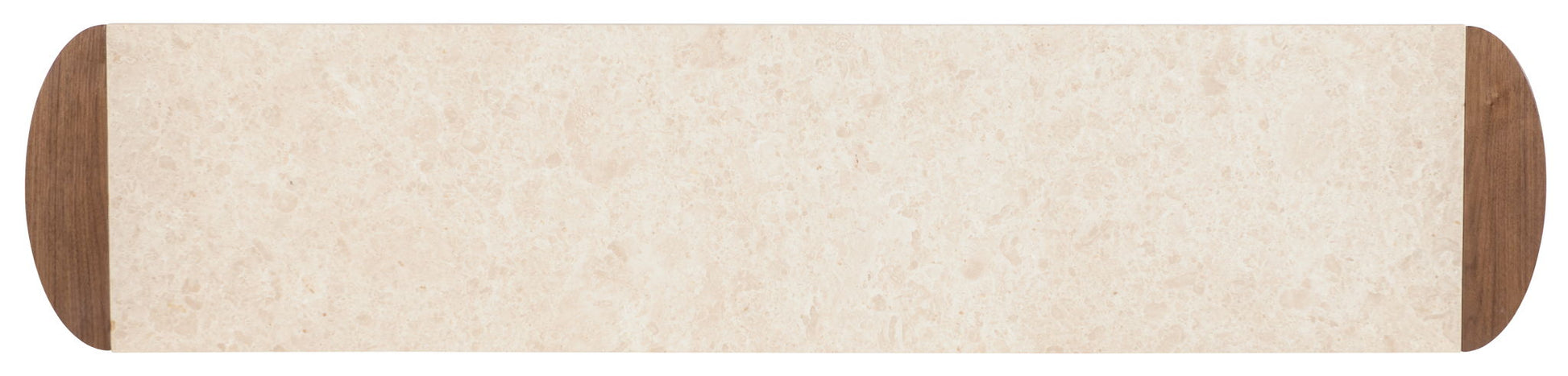 The Eleana Console Table is perfect for creating an elegant focal point in entryways or living rooms. Featuring a Light Caramel walnut veneer frame, a honed marble top in white and beige tones, and a slender silhouette, it blends timeless craftsmanship with contemporary style. This table offers a chic surface for décor or practical use.