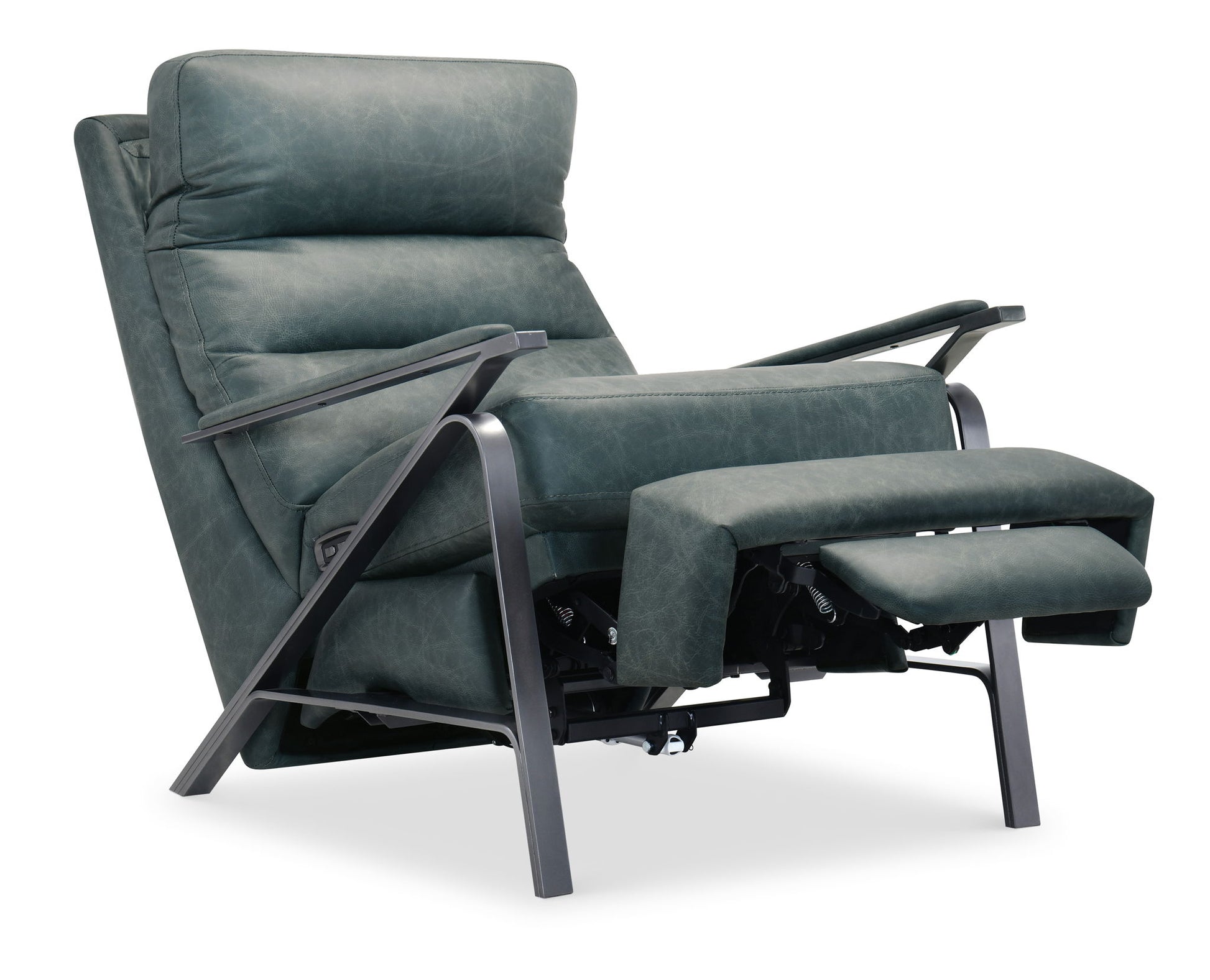 Sleek and modern, the Elixir Power Recliner in West Winter Lake leather delivers luxury comfort with refined performance. Featuring a power reclining mechanism, power headrest, USB port, and a bold dark metal frame, this recliner is perfect for contemporary living rooms. Its clean channeled back and premium top grain leather create a designer look with high-end functionality.