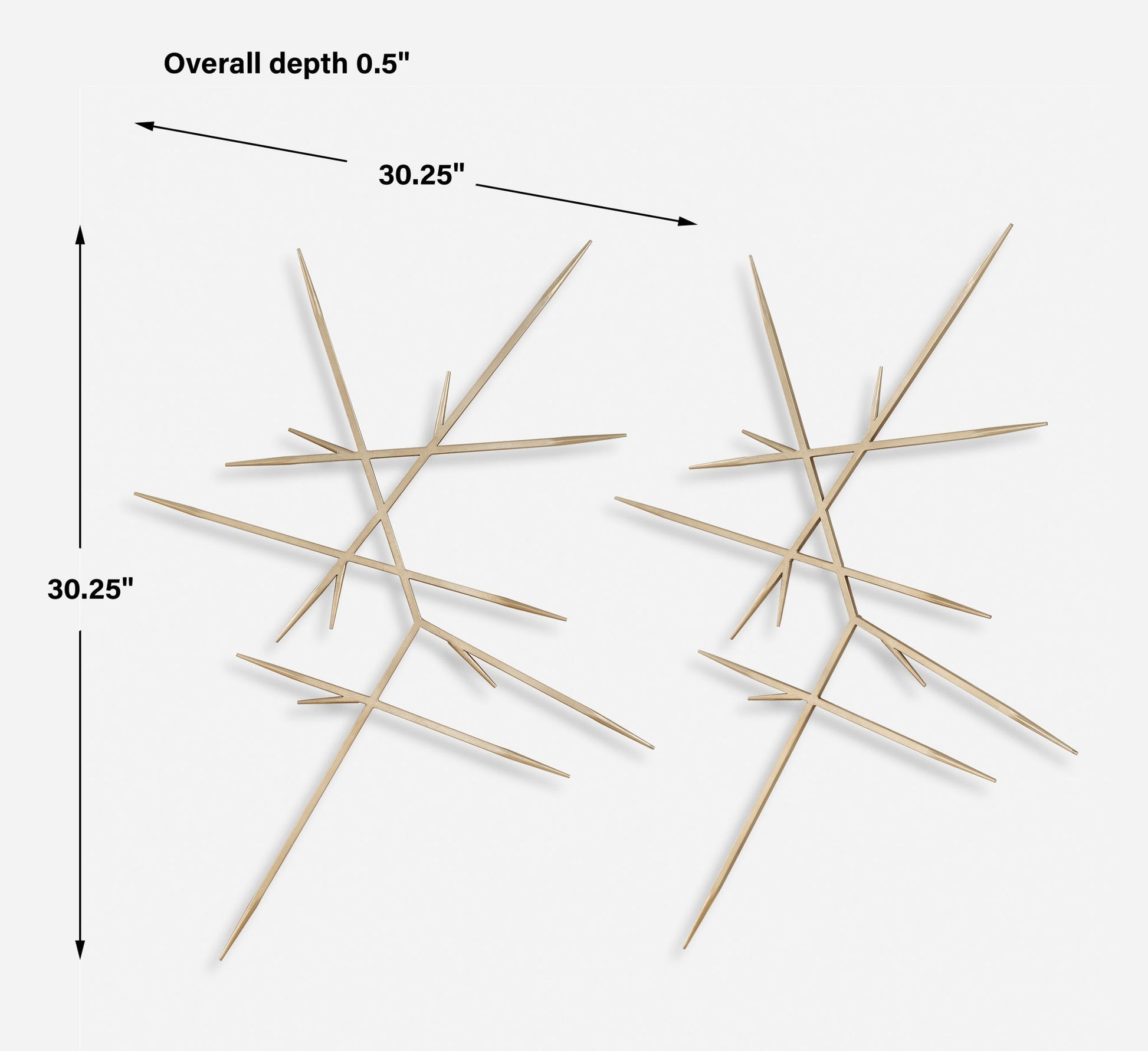 Striking Contemporary Bursts Reminiscent Of Fireworks Allow For A Customizable Display Of Multiple Sets In Any Direction. Constructed Of Iron And Finished In Clean Silver Leaf.