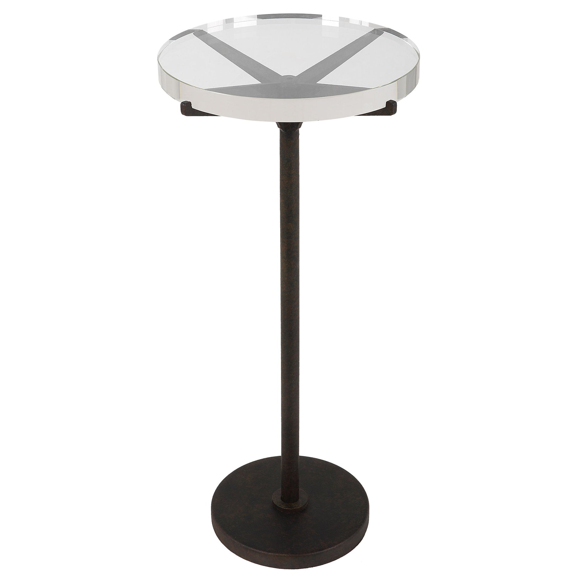 Inspired By Classic Industrial Style, The Forge Accent Table Is Finished In A Textured Rustic Brown Topped With A Clear Crystal Tabletop.