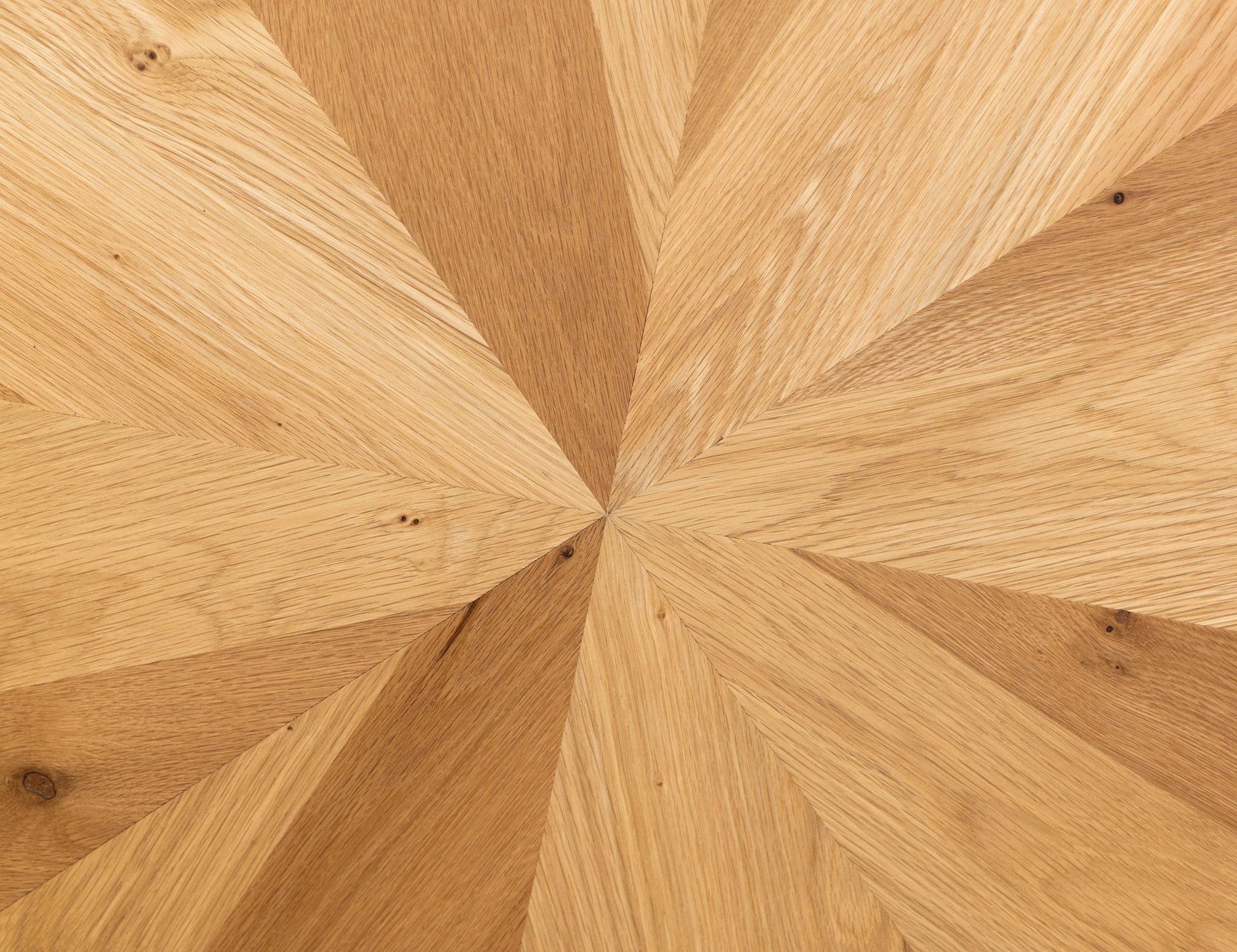 - Finish is achieved through a multi-step lacquer in a natural tone.