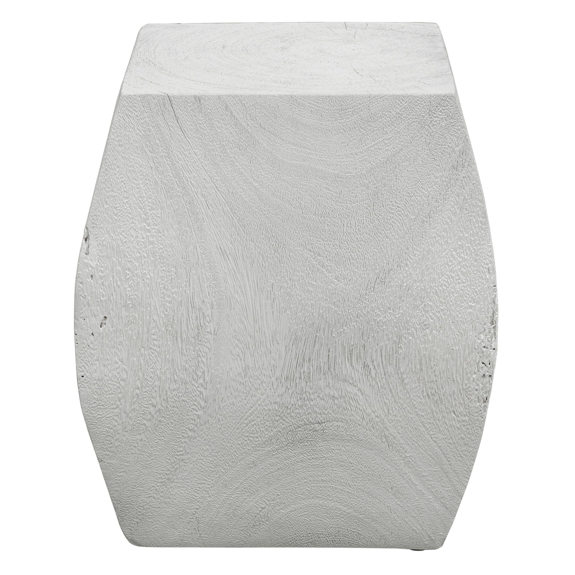 Crafted From A Solid Piece Of Suar Wood, The Grove Accent Stool Is The Perfect Natural Accent. Finished In A Soft Ivory With Natural Wood Undertones. Cracks And Variations In The Grain Are Natural To This Type Of Wood.