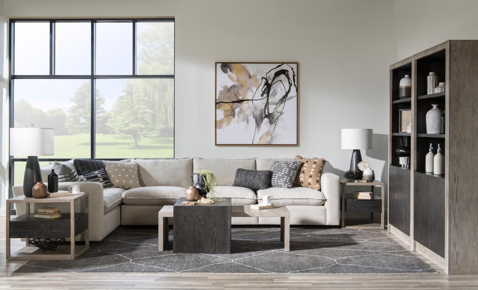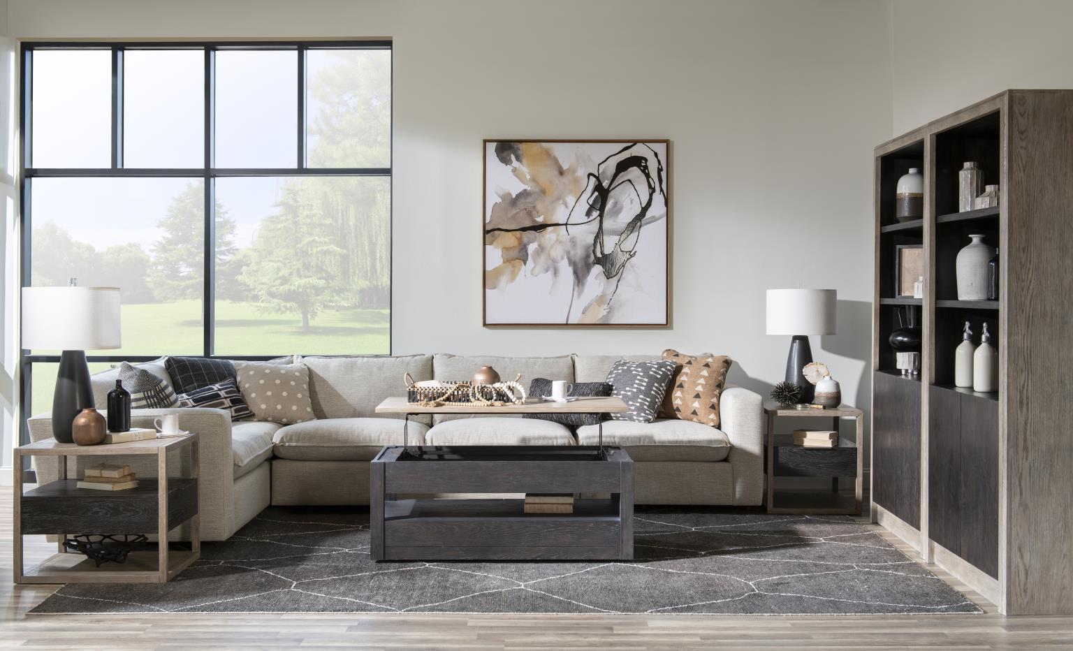 Inspired by aged and exposed elements,, the Halifax collection offers modern rustic styled pieces with a relaxed feel. The dark Java finish contrasts beautifully with the lighter Flax finish. The tones match those of rugged and earthy hues found in nature. Clean shapes and simple lines mixed with classic furniture forms adds a unique spin on this total home collection.
